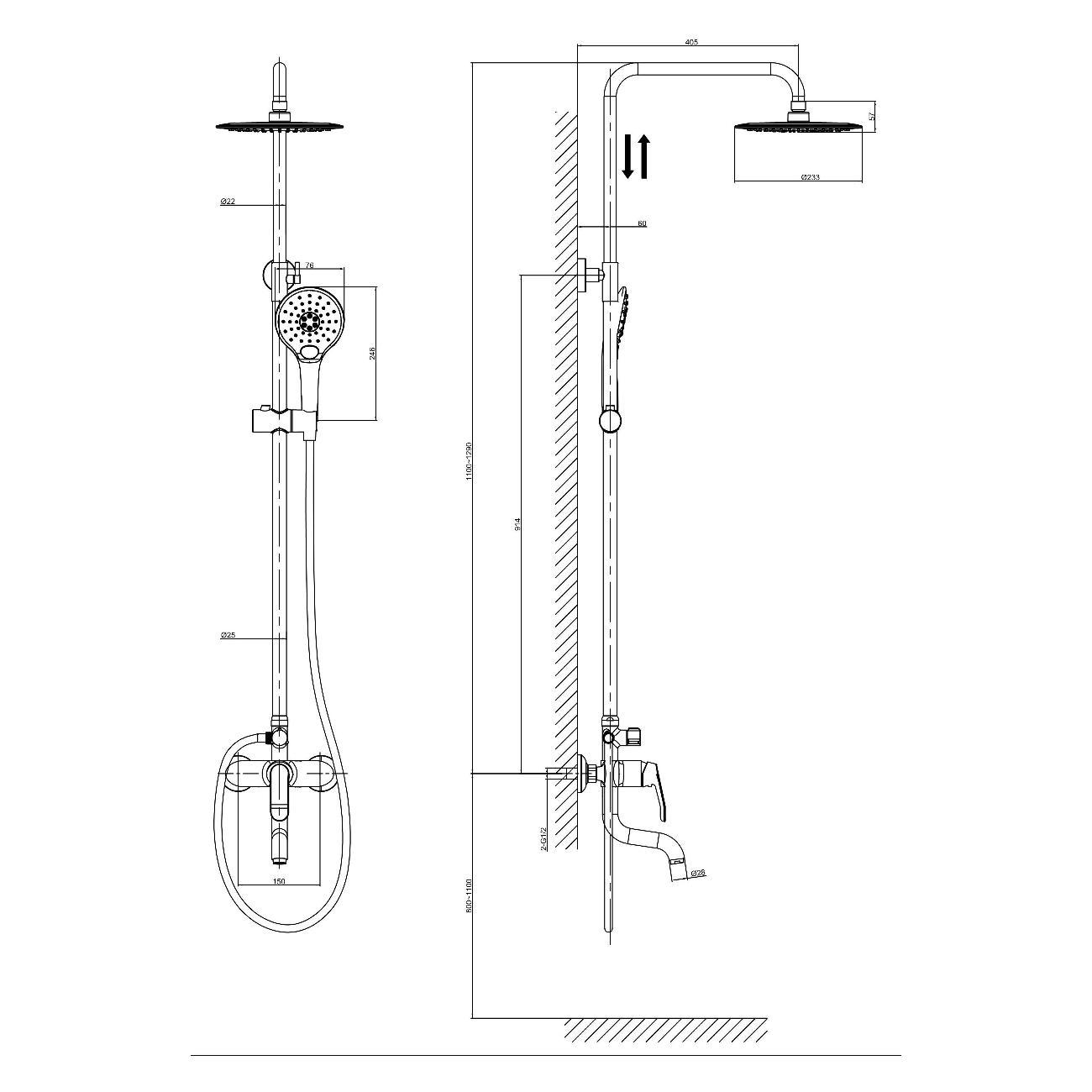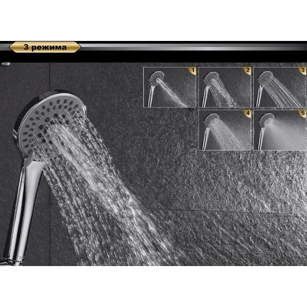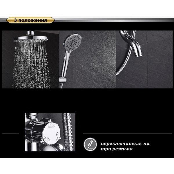 Функциональная душевая система с широкой лейкой, с эффектом настоящего тропического ливня. Штанга регулируется под любой рост.