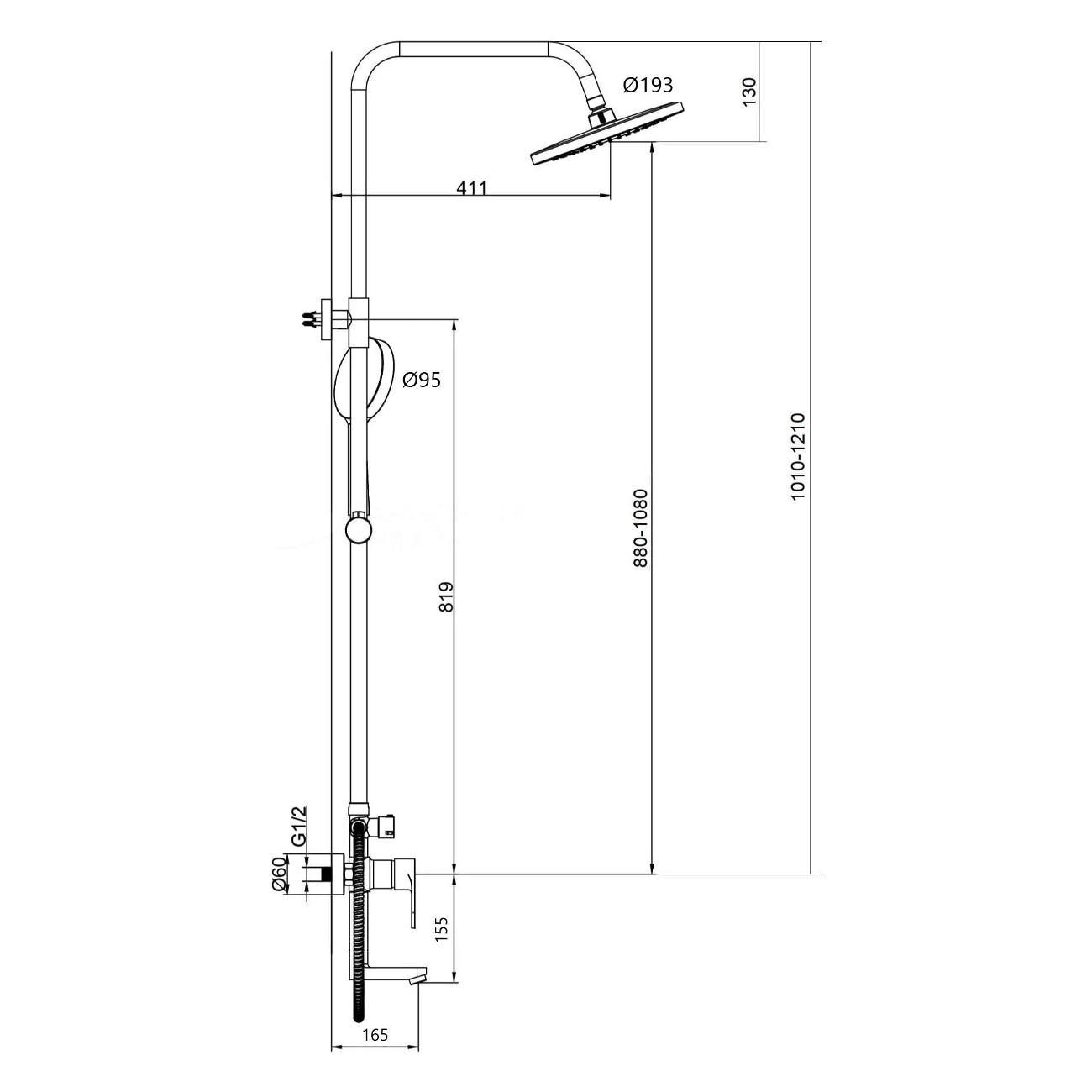 Центральным элементом комплекта выступает верхний душ диаметром 193 мм, выполненный из прочного ABS‑пластика. Оснащённый силиконовыми форсунками, он создаёт мягкий, равномерный поток воды и при этом остаётся простым в уходе — известковый налёт легко удаляется без специальных средств. Благодаря шарнирной системе крепления душ можно точно настроить по наклону вдоль всей оси, подбирая идеальный угол подачи воды.