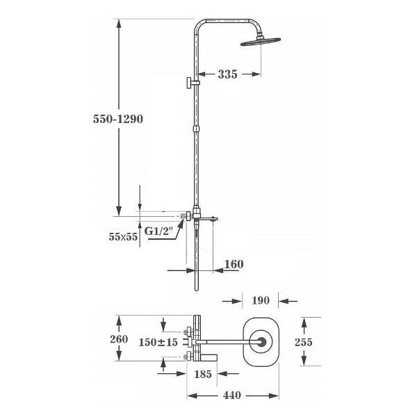 - Душевая штанга из нержавеющей стали с регулировкой по высоте, позволяющая адаптировать систему под индивидуальные потребности пользователей.