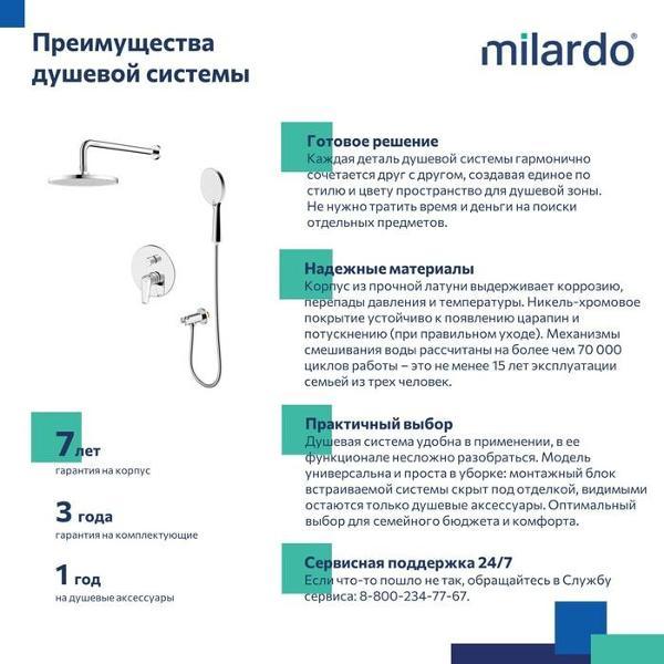 Вы можете купить Душевая система Milardo DALSB02M67 в магазинах М.Видео по доступной цене. Душевая система Milardo DALSB02M67: подробное описание, фото и отзывы реальных покупателей, характеристики, возможность скачать инструкции и подобрать аксессуары.