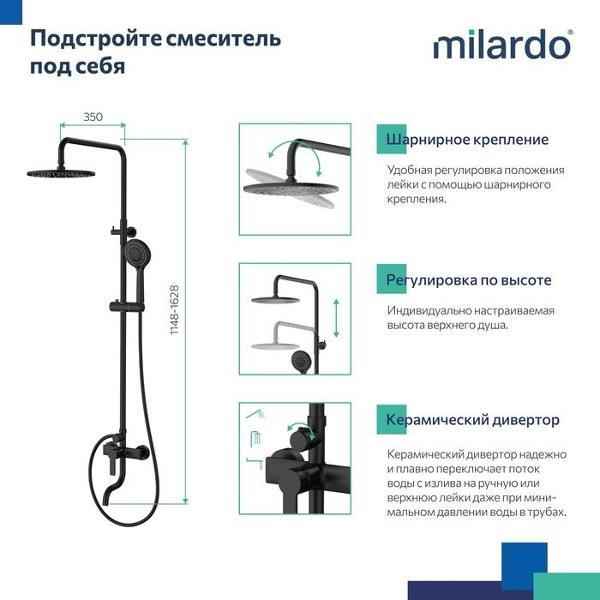 Вы можете купить Душевая система Milardo STRBL5FM06 в магазинах М.Видео по доступной цене. Душевая система Milardo STRBL5FM06: подробное описание, фото и отзывы реальных покупателей, характеристики, возможность скачать инструкции и подобрать аксессуары.