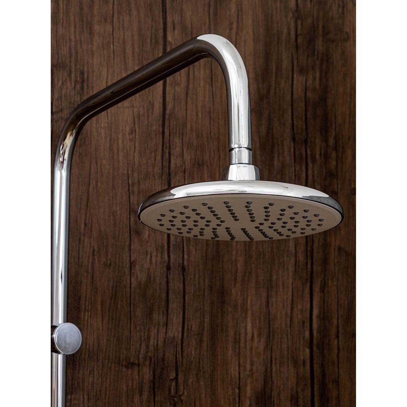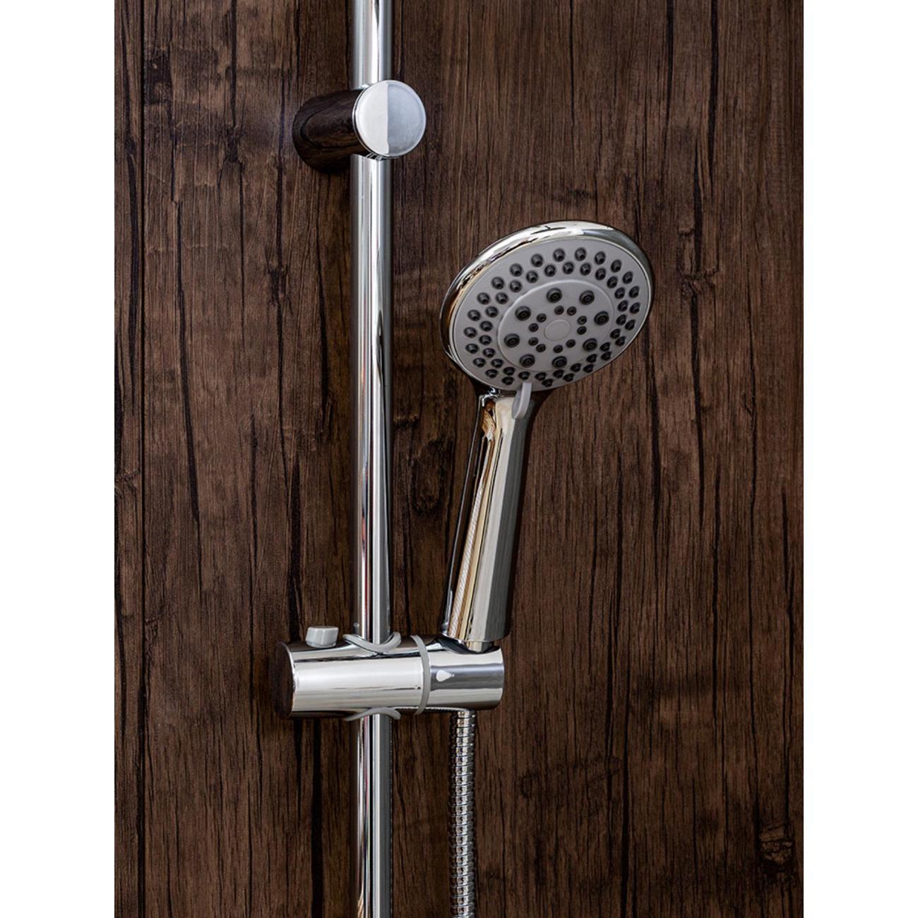 Душевая система Orange Alfi в комплекте: однозахватный смеситель для ванны с керамическим картриджем и изливом (173 мм); верхний душ d 188 мм c регулировкой угла наклона (с силиконовыми наконечниками для просто удаления известкового налёта); ручной душ d 120 мм (5 режимов); регулируемый по высоте и наклону держатель ручного душа; керамический переключатель; шланг 1,5 м (в металлической оплетке) с защитой от перекручивания; штанга 970 мм с возможностью установки в старые отверстия. Цвет глянцевый хром.