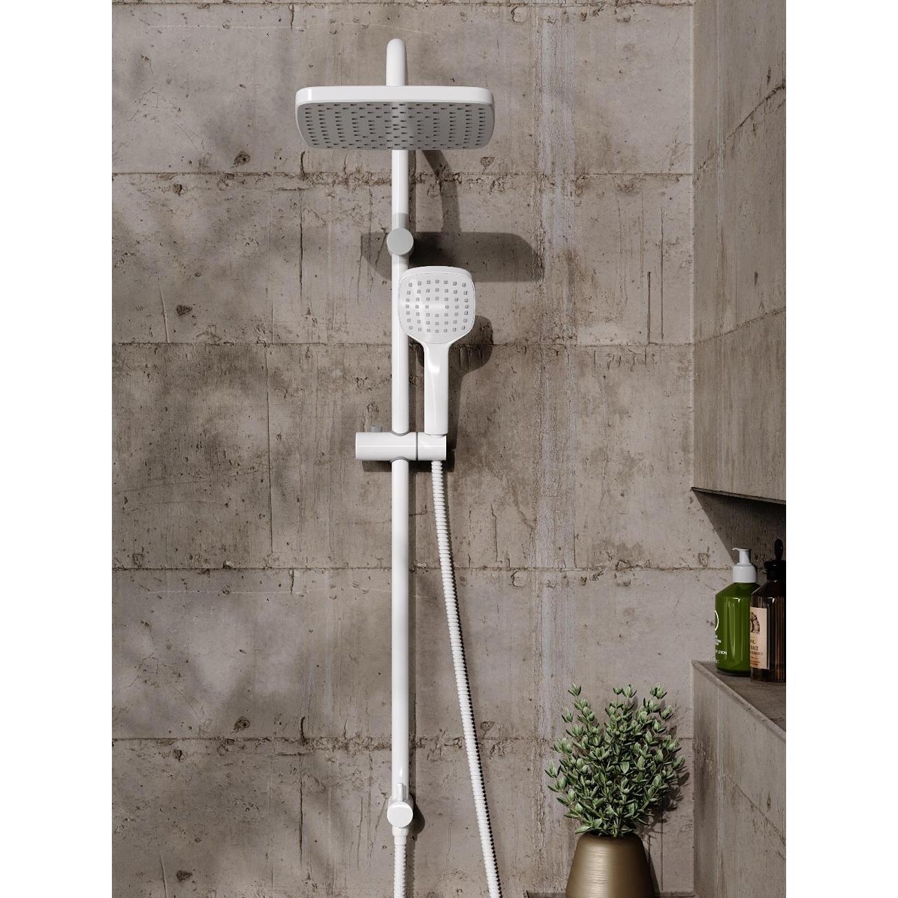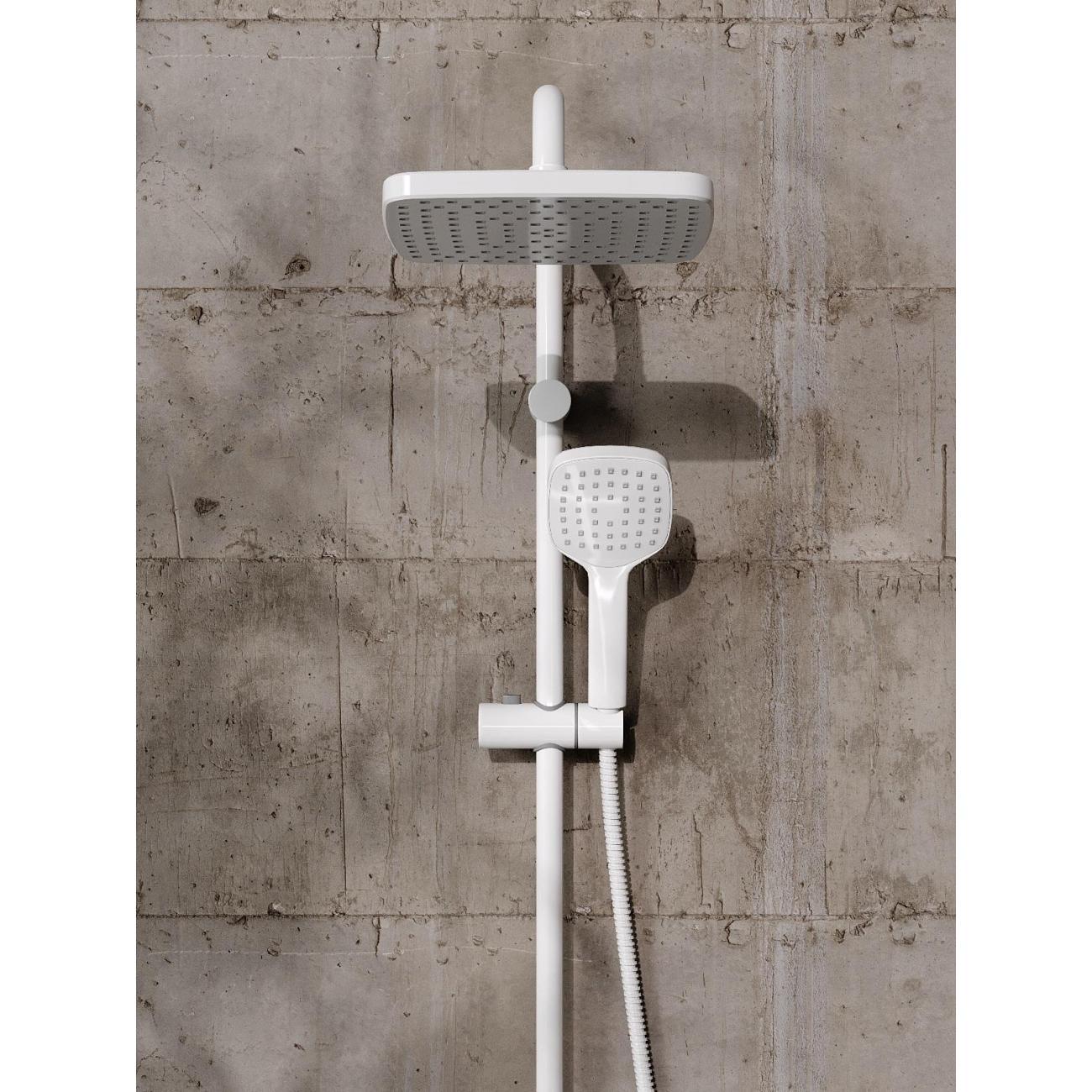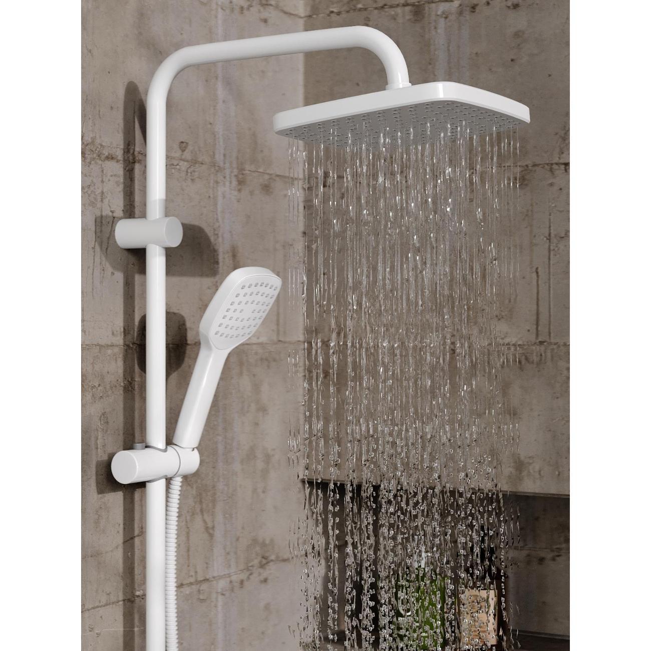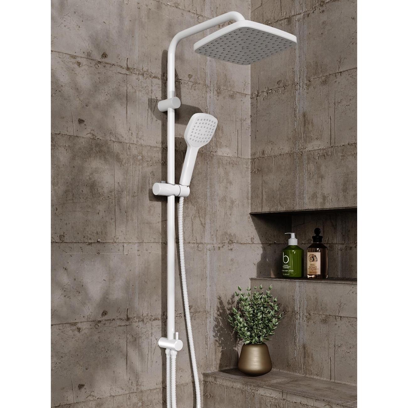 Душевая система Orange O-Shower в цвете белый глянец: верхний душ (230х230 мм) создаёт эффект тропического дождя, что дарит непередаваемые эмоции во время ежедневных банных процедур. Ручной душ 120 мм (1 режим) на гибком полутораметровом шланге (в металлической оплетке) с защитой от перекручивания. Держатели верхнего и ручного душа с регулировкой угла наклона, штанга 970 мм с подвижным держателем (возможность установки в старые отверстия). Подвижные детали отличаются долговечностью. Форсунки верхнего и ручного душа с функцией легкого очищения от известкового налета.