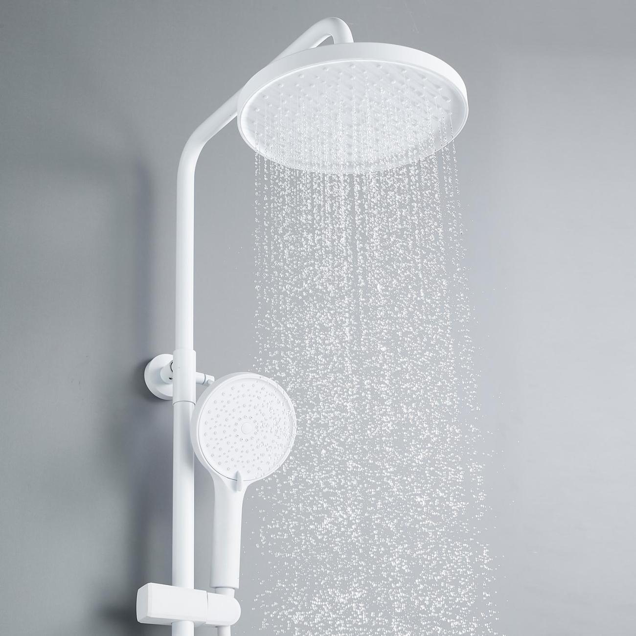 Душевая лейка из ABS пластика с тремя режимами работы также оснащена силиконовыми форсунками, что делает её лёгкой в уходе. Высота лейки регулируется на душевой штанге, а телескопическая конструкция позволяет настроить систему под любой рост, обеспечивая удобство для всех членов семьи. Монтаж на два отверстия с межосевым расстоянием 150 мм, которое можно регулировать с помощью эксцентриков, делает установку простой и удобной.
