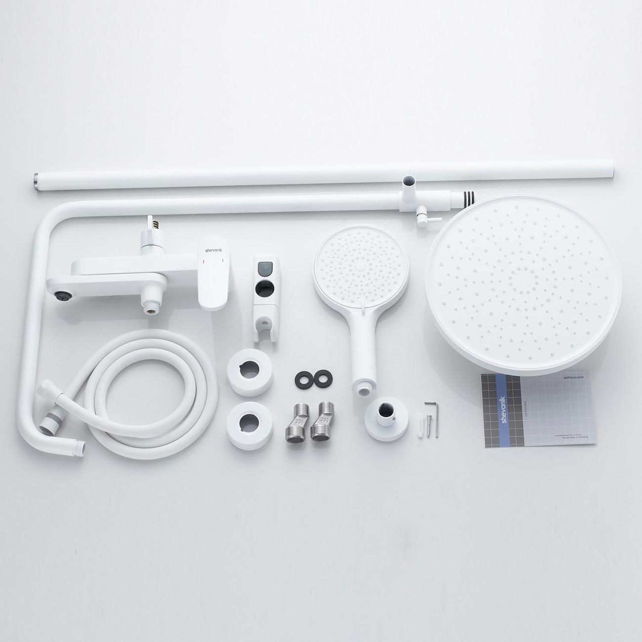 Одной из уникальных особенностей Shevanik S4336C является поворотный излив для ванны, который компактно складывается, экономя ценное пространство. Излив оснащён аэратором, обеспечивающим мягкое и равномерное распределение воды. Верхний душ размером 250х250 мм из ABS пластика с силиконовыми форсунками не только легко очищается от известкового налёта, но и создаёт эффект настоящего спа у вас дома. Благодаря шарнирному креплению, верхний душ регулируется по наклону, подстраиваясь под ваши предпочтения.