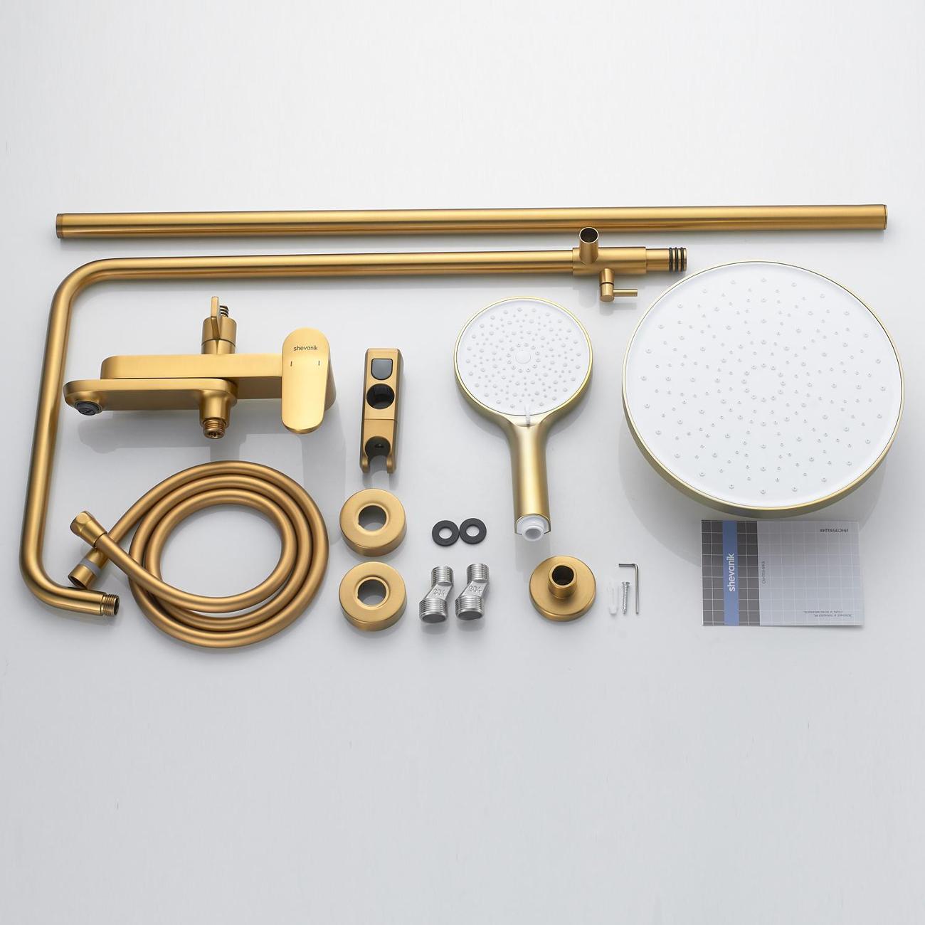 Погрузитесь в мир изысканности и комфорта с душевой системой Shevanik S4336G, которая сочетает в себе утончённый дизайн и передовые технологии. Изготовленная из высококачественной латуни, эта система обещает долговечность и надёжность, становясь украшением любой ванной комнаты. Керамический картридж и удобное рычажное управление обеспечивают исключительную плавность и точность в регулировке потока воды, даря вам незабываемые ощущения при каждом использовании.