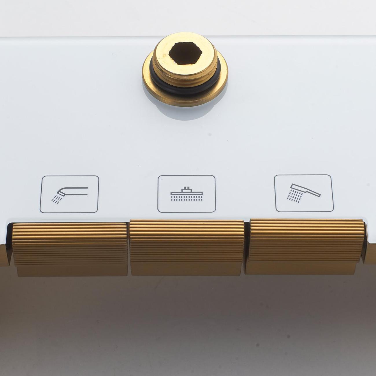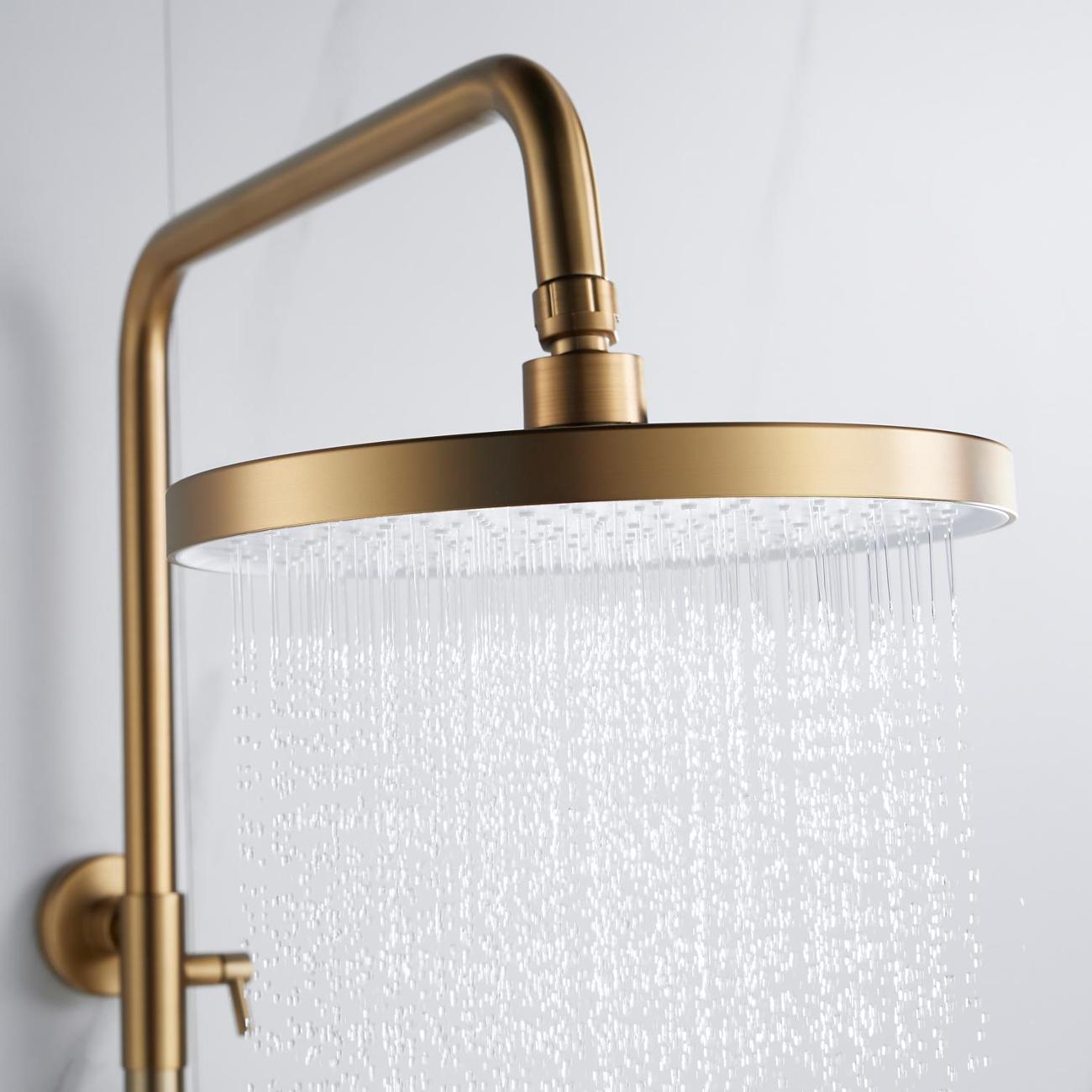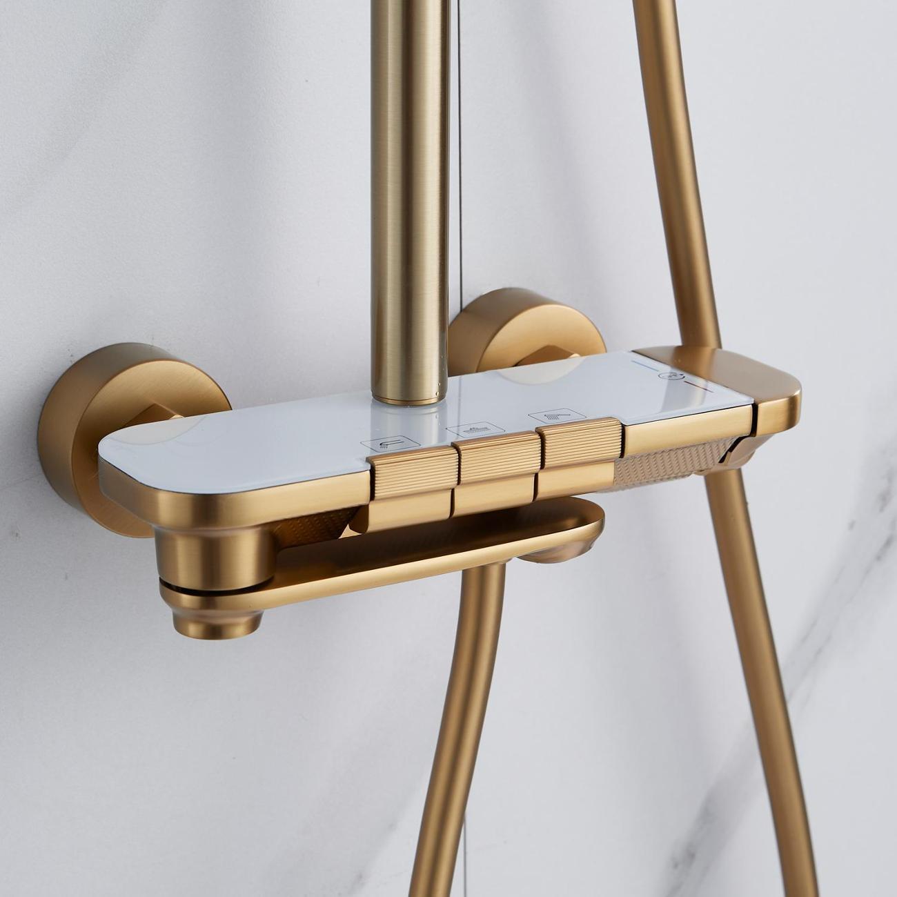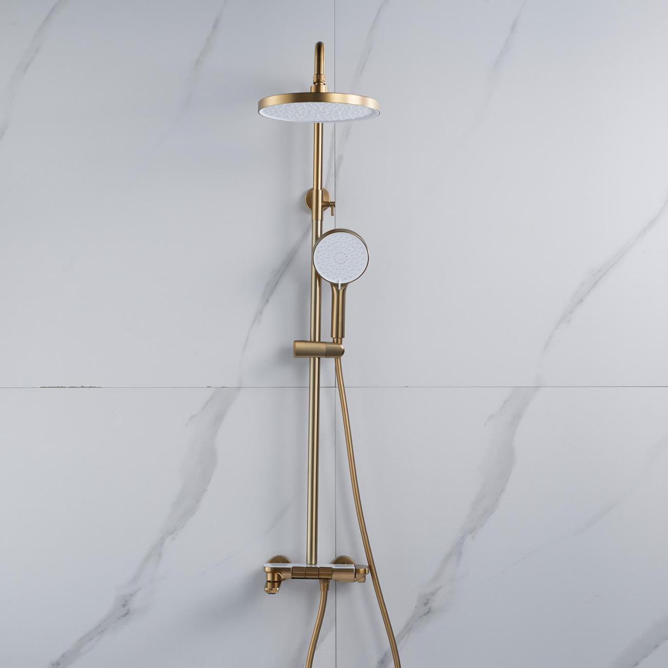 Элегантная душевая система Shevanik S4726G в цвете "золотой сатин" (сатинированное золото) воплощает в себе современный дизайн и безупречное качество исполнения. Изготовленная из прочной латуни, она гарантирует долговечность и надежность в использовании.