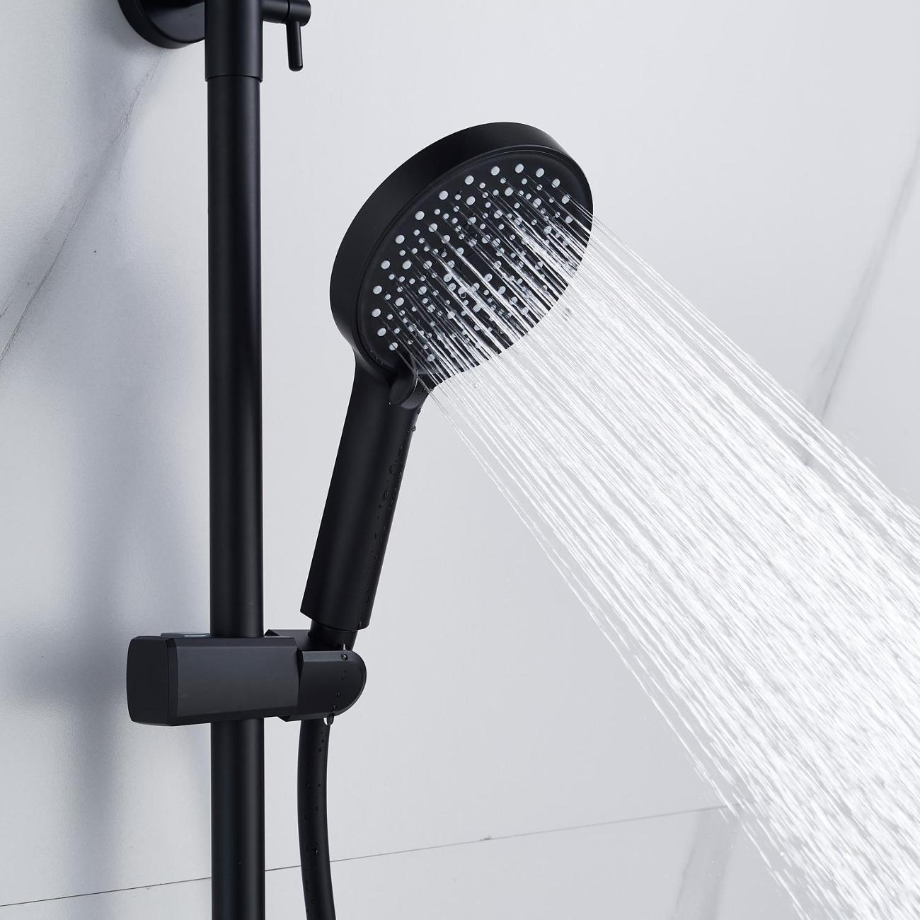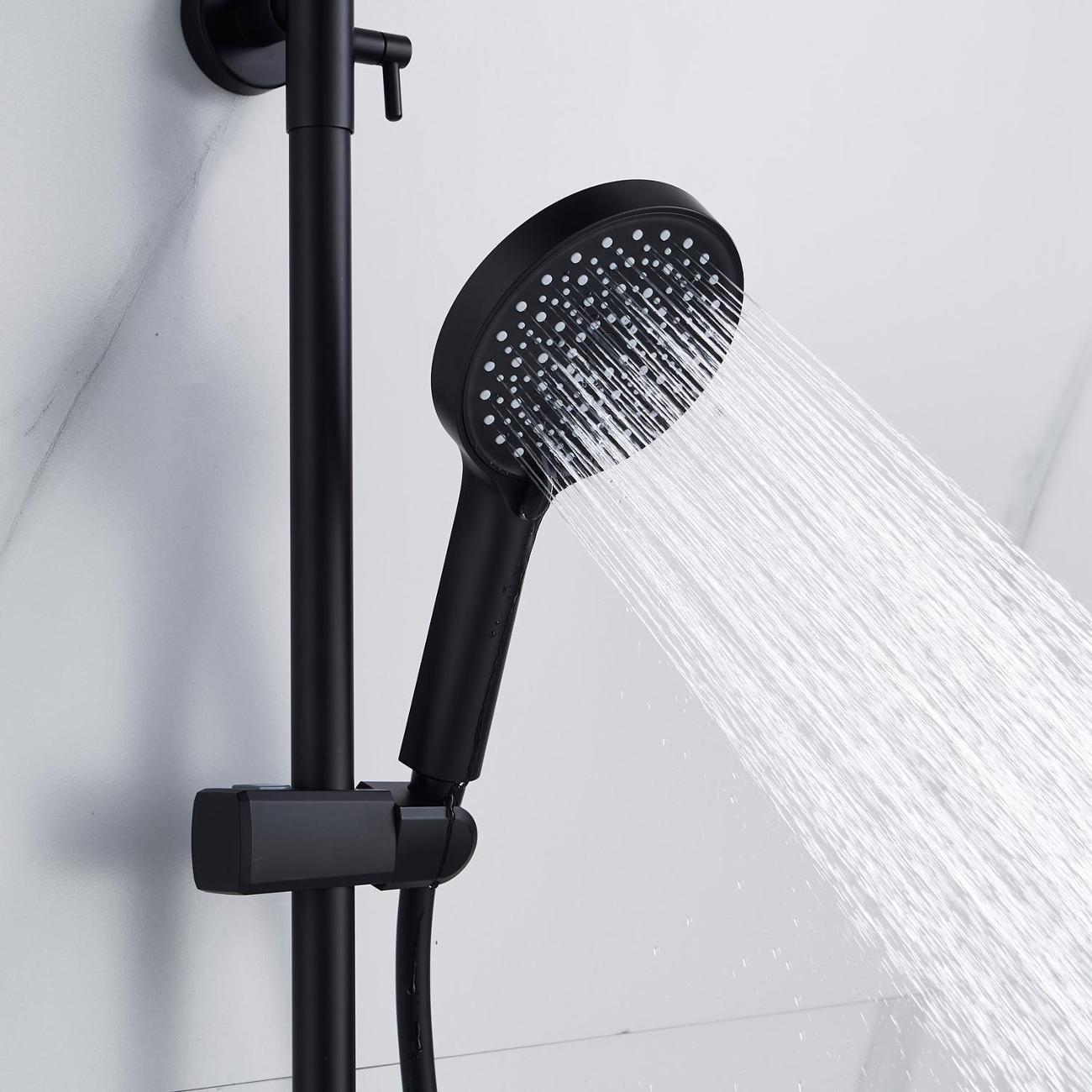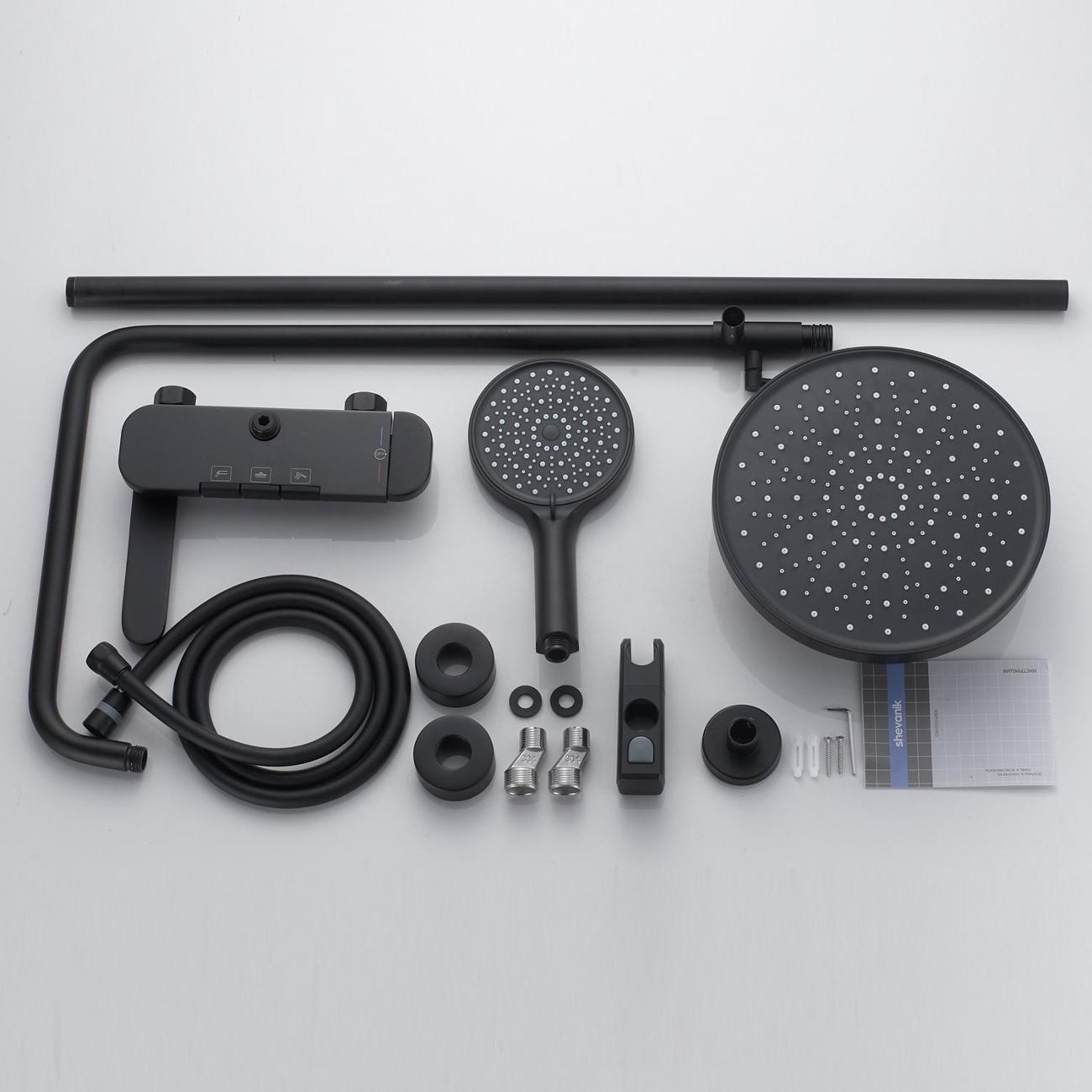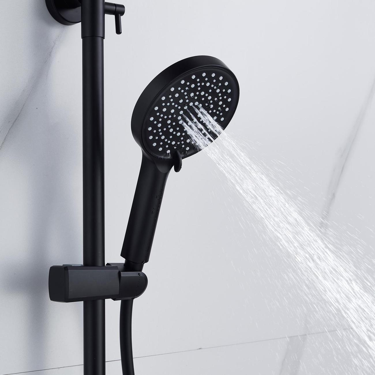 Элегантная душевая система Shevanik S4726H в черном матовом цвете воплощает в себе современный дизайн и безупречное качество исполнения. Изготовленная из прочной латуни, она гарантирует долговечность и надежность в использовании.