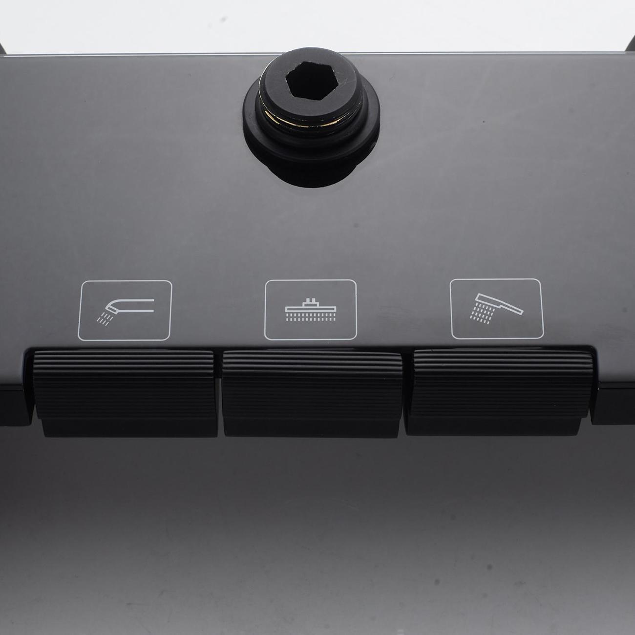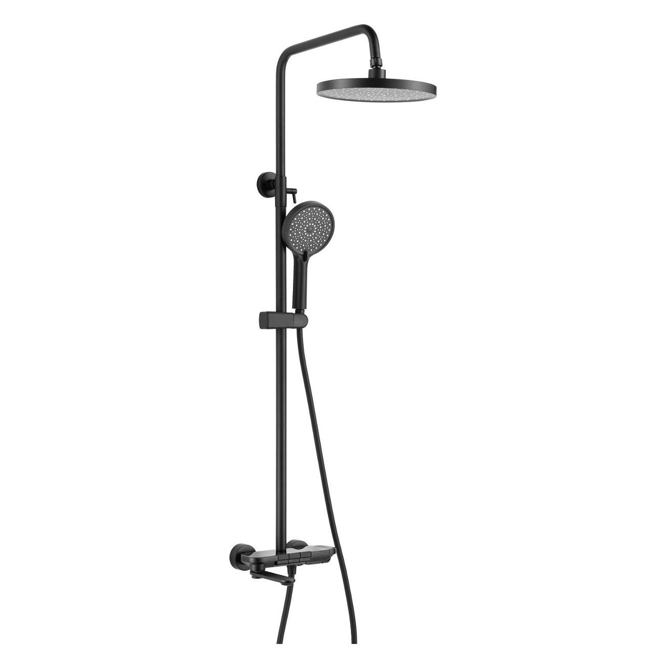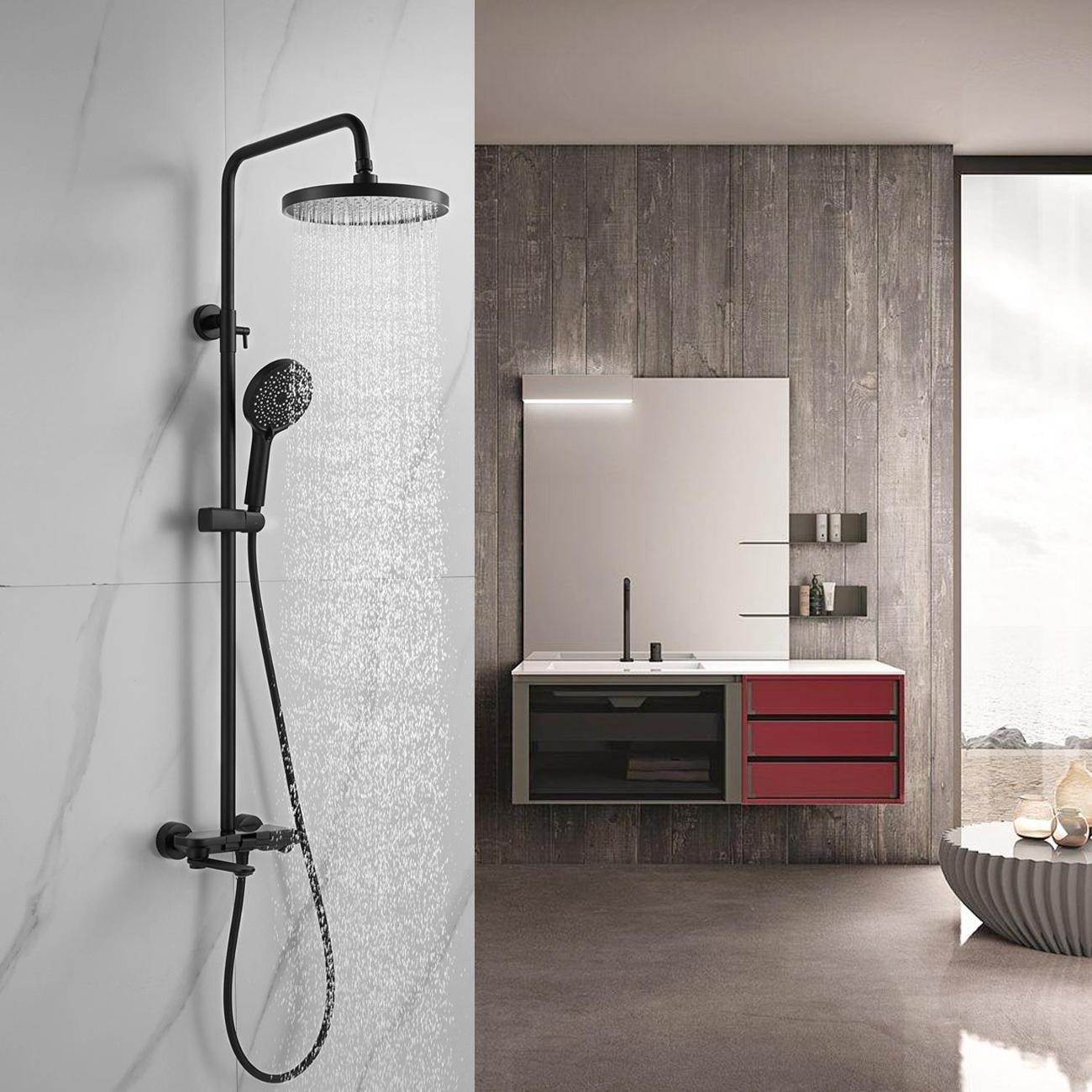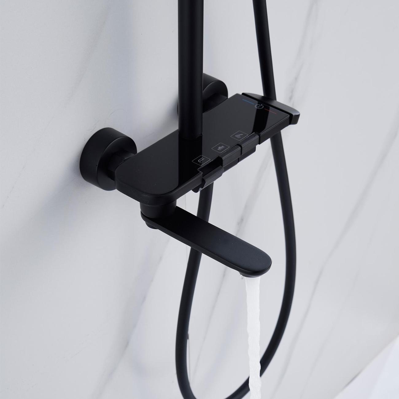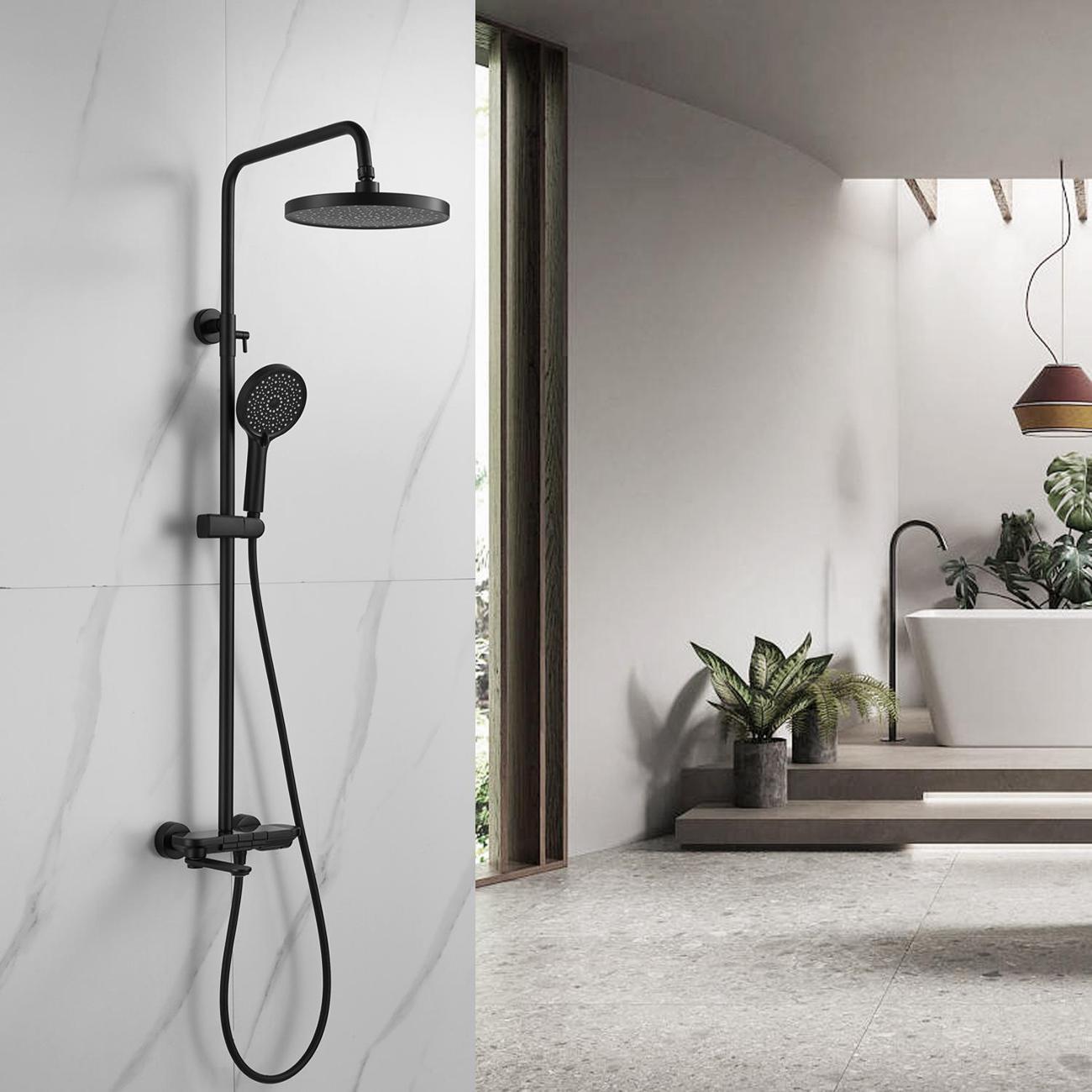 Элегантная душевая система Shevanik S4726H в черном матовом цвете воплощает в себе современный дизайн и безупречное качество исполнения. Изготовленная из прочной латуни, она гарантирует долговечность и надежность в использовании.