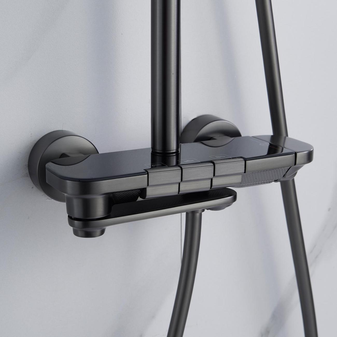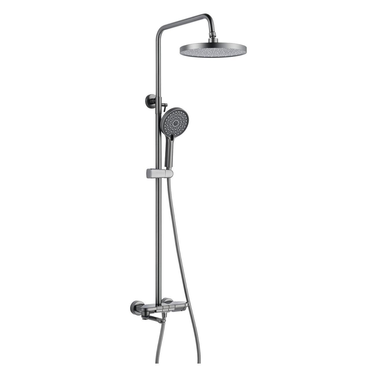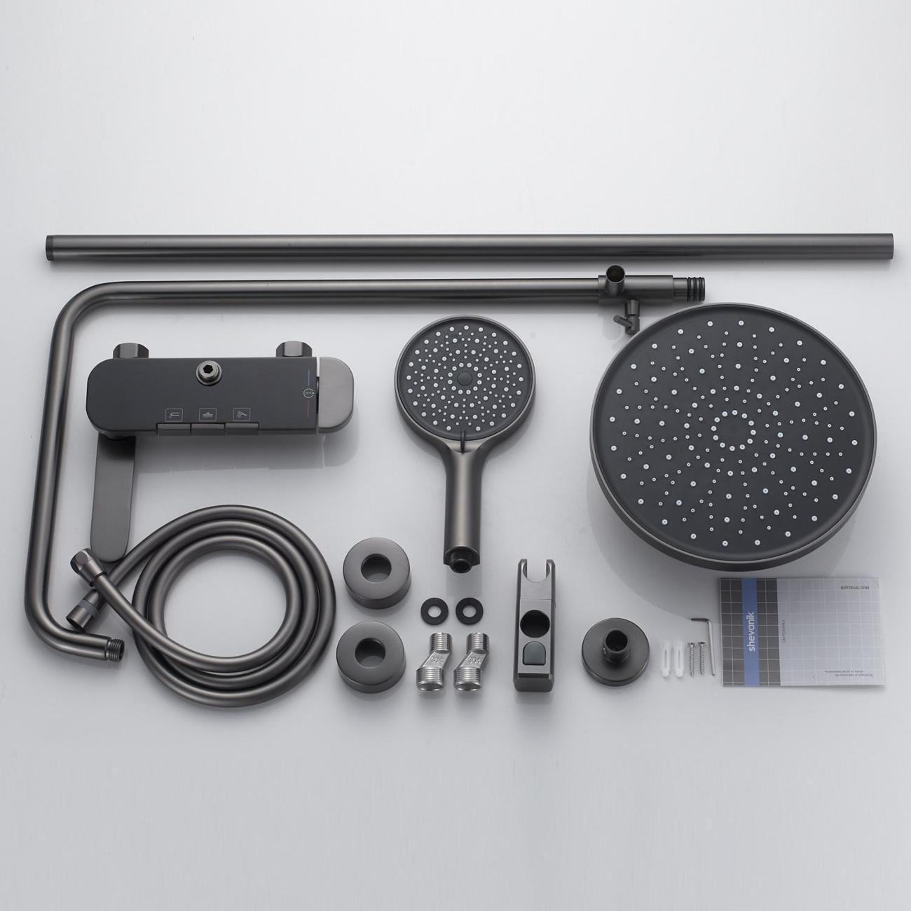 Элегантная душевая система Shevanik S4726T в цвете "оружейная сталь" воплощает в себе современный дизайн и безупречное качество исполнения. Изготовленная из прочной латуни, она гарантирует долговечность и надежность в использовании.
