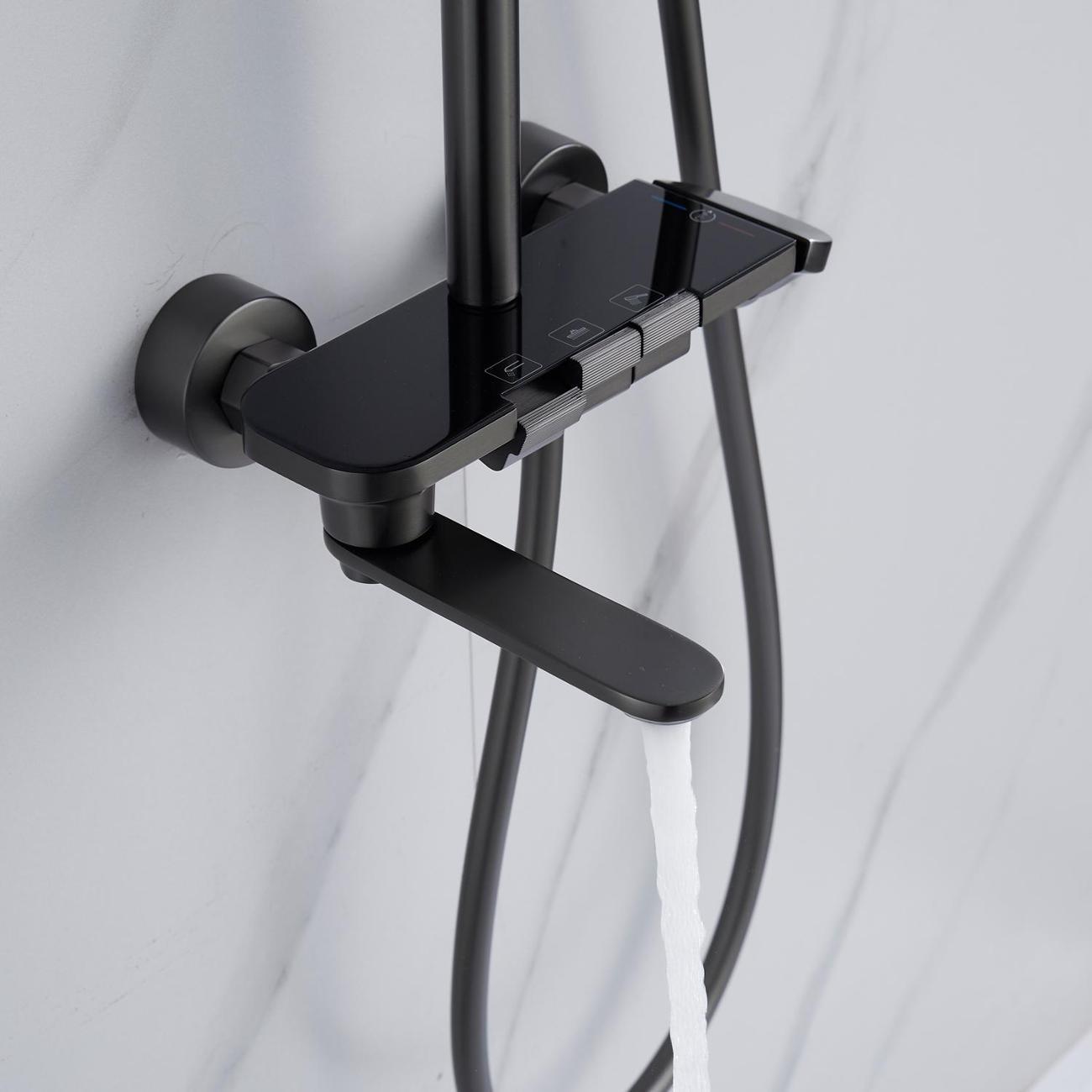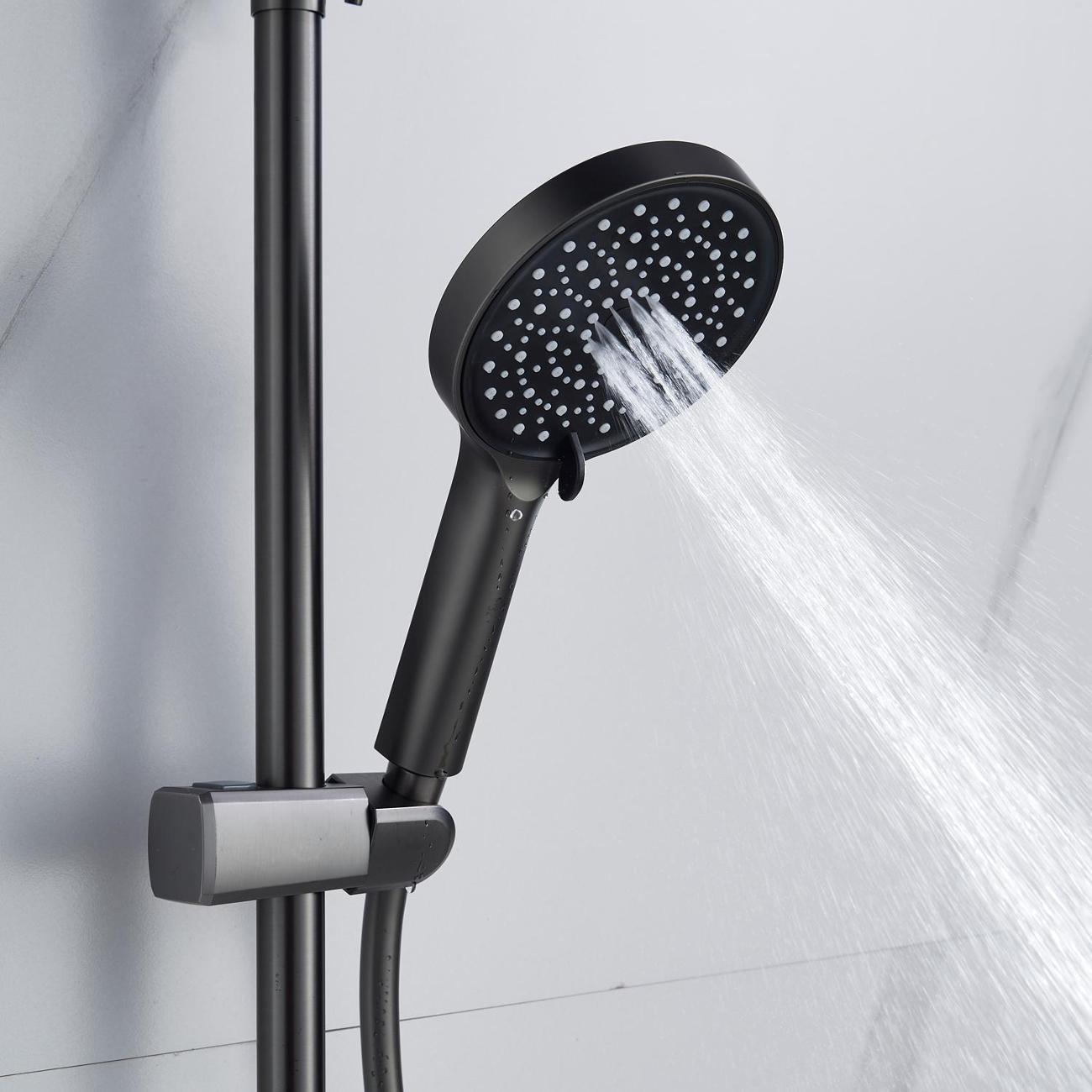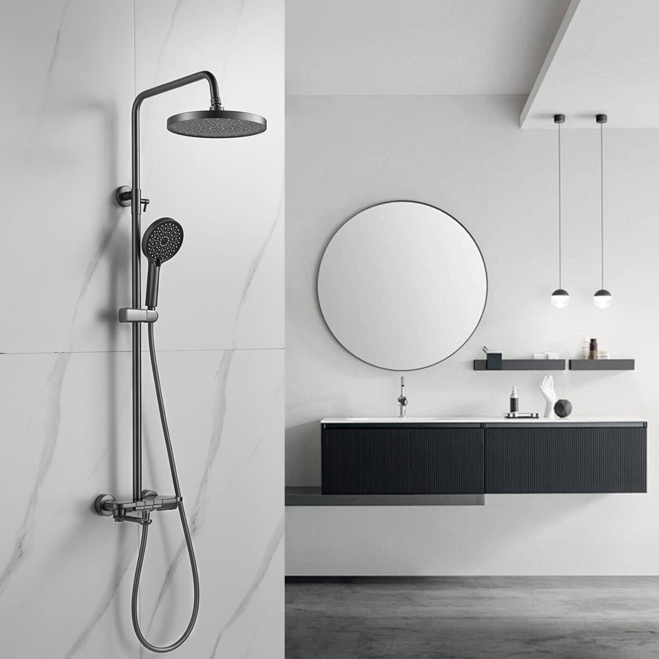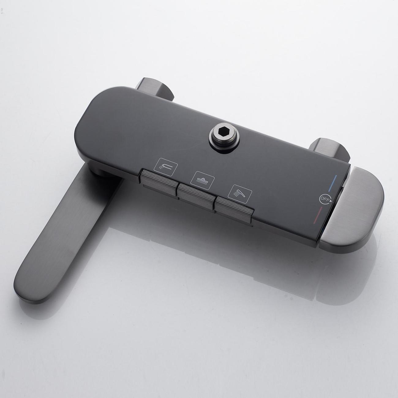 Элегантная душевая система Shevanik S4726T в цвете "оружейная сталь" воплощает в себе современный дизайн и безупречное качество исполнения. Изготовленная из прочной латуни, она гарантирует долговечность и надежность в использовании.