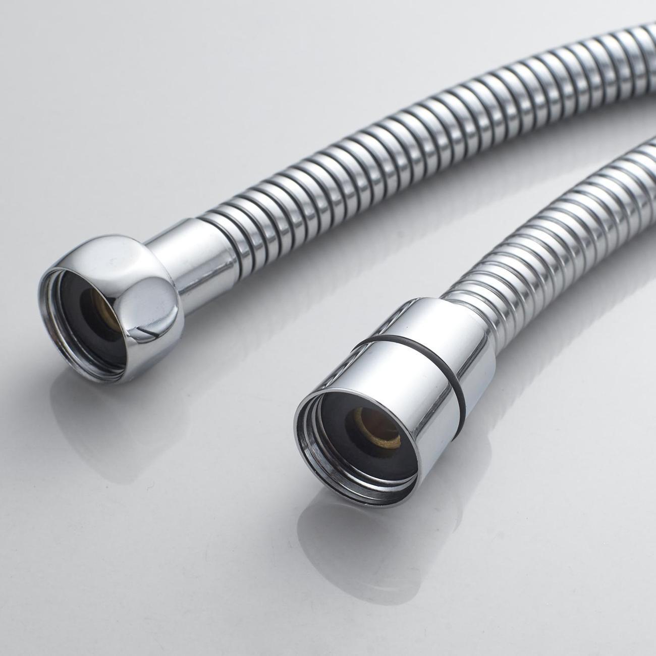 Прочность и гибкость системы обеспечивает душевой шланг в двойной металлической оплётке длиной 150 см.