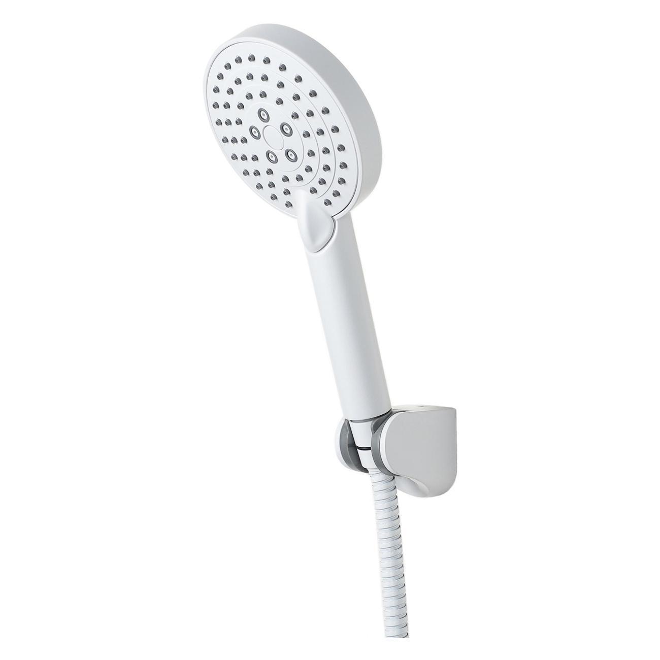 Душевой набор Style LM53w матовый белый: ручной душ d 110 мм (3 режима струи) с силиконовыми наконечниками (защита от известкового налета RUB CLEAN), система AIR IN обеспечивает увеличенный напор и вместе с тем сокращает расход воды; настенный держатель ручного душа с регулировкой угла наклона (в шести позициях); душевой шланг 150 см в металлической оплетке, с защитой от перекручивания.