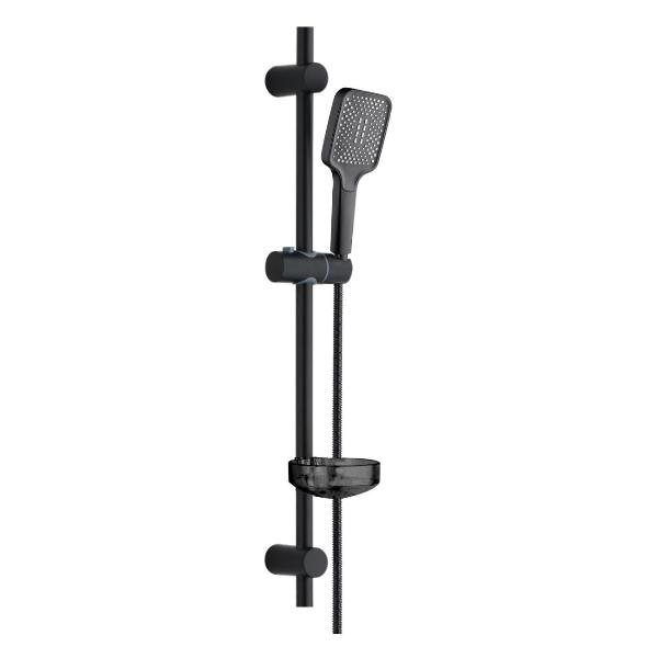 Душевой гарнитур Orange в цвете матовый черный украсит интерьер ванной комнаты в современном стиле. Подвижные детали отличаются долговечностью. Гарнитур включает в себя: ручной душ (103 мм) - 1 режим струи, форсунки с функцией легкого очищения от известкового налета, система AIR IN обеспечивает увеличенный напор и вместе с тем сокращает расход воды, материал ABS-пластик; душевой шланг 1500-1800 мм в металлической оплетке, с защитой от перекручивания; держатель ручного душа на штанге с регулировкой угла наклона и по высоте; штанга 700 мм с подвижными держателями (возможность установки в старые отверстия), материал штанги нержавеющая сталь; быстросъемная мыльница - материал ABS-пластик.