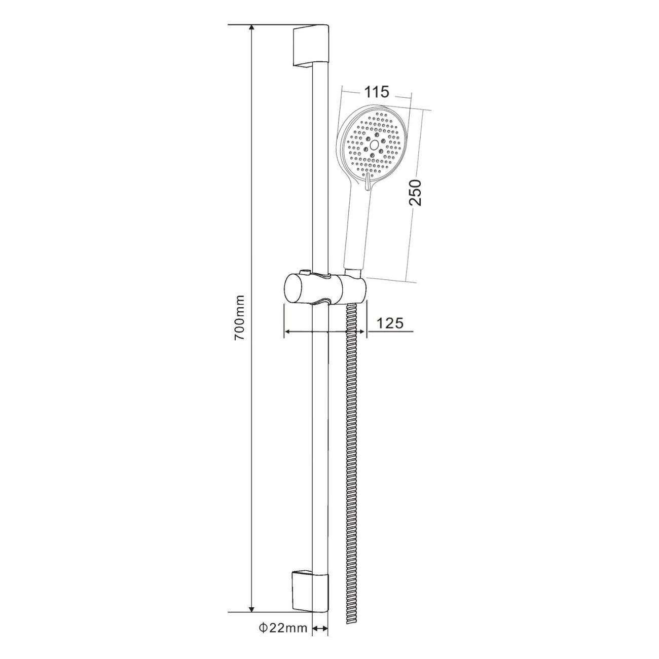 Душевой гарнитур Orange в цвете матовый черный украсит интерьер ванной комнаты в современном стиле. Подвижные детали отличаются долговечностью. Гарнитур включает в себя: ручной душ (115 мм) - 3 режима струи, форсунки с функцией легкого очищения от известкового налета, система AIR IN обеспечивает увеличенный напор и вместе с тем сокращает расход воды, материал ABS-пластик; душевой шланг 1500-1800 мм в металлической оплетке, с защитой от перекручивания; держатель ручного душа на штанге с регулировкой угла наклона и по высоте; штанга 700 мм с фиксированными держателями, материал штанги нержавеющая сталь.