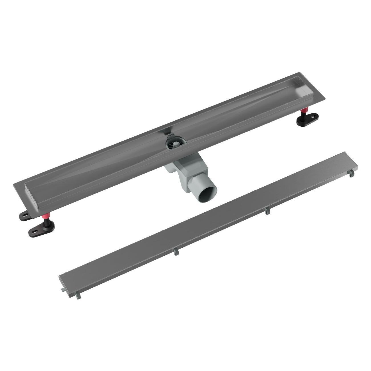 Линейный трап для душа BAS 700 мм с комбинированным поворотным гидрозатвором 360° (цвет — оружейная сталь).