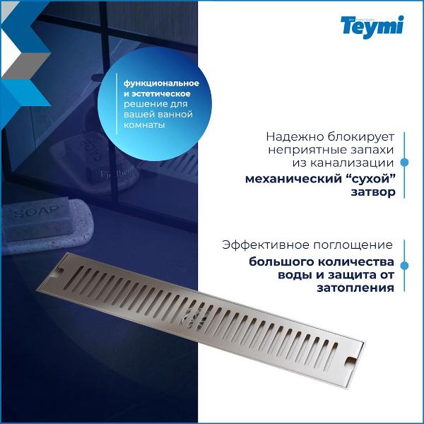 Душевой трап Teymi Helmi с сухим затвором – идеальное решение для обустройства современной душевой зоны. Модель Helmi T90331 размером 10х50 см объединяет инновационные технологии с практичностью, обеспечивая эффективный водоотвод и защиту от канализационных запахов. Стильная решетка из нержавеющей стали придает изделию элегантный внешний вид и гарантирует долговечность конструкции. Производитель предоставляет 5-летнюю гарантию на продукт, подтверждая его высокое качество. Ключевые преимущества модели: · Вертикальный выпуск с возможностью подключения 50 мм; · Оптимальная пропускная способность – 32 л/мин; · Механический сухой затвор предотвращает появление запахов; · Встроенная защита от попадания мусора в канализацию; · Работоспособность при температурах от -30° до +75°C; · Удобный монтаж; Трап под душевую кабину разработан специально для помещений с повышенной влажностью. Конструкция лотка обеспечивает быстрый отвод большого объема воды, исключая риск затопления. Материал устойчив к воздействию бытовой химии, что позволяет использовать различные чистящие средства. Продукция Teymi – это надежное решение для водоотведения, высококачественные материалы, используемые при производстве, гарантируют длительную эксплуатацию без потери технических характеристик. Душевой трап Helmi станет надежным функциональным элементом вашей ванной комнаты.