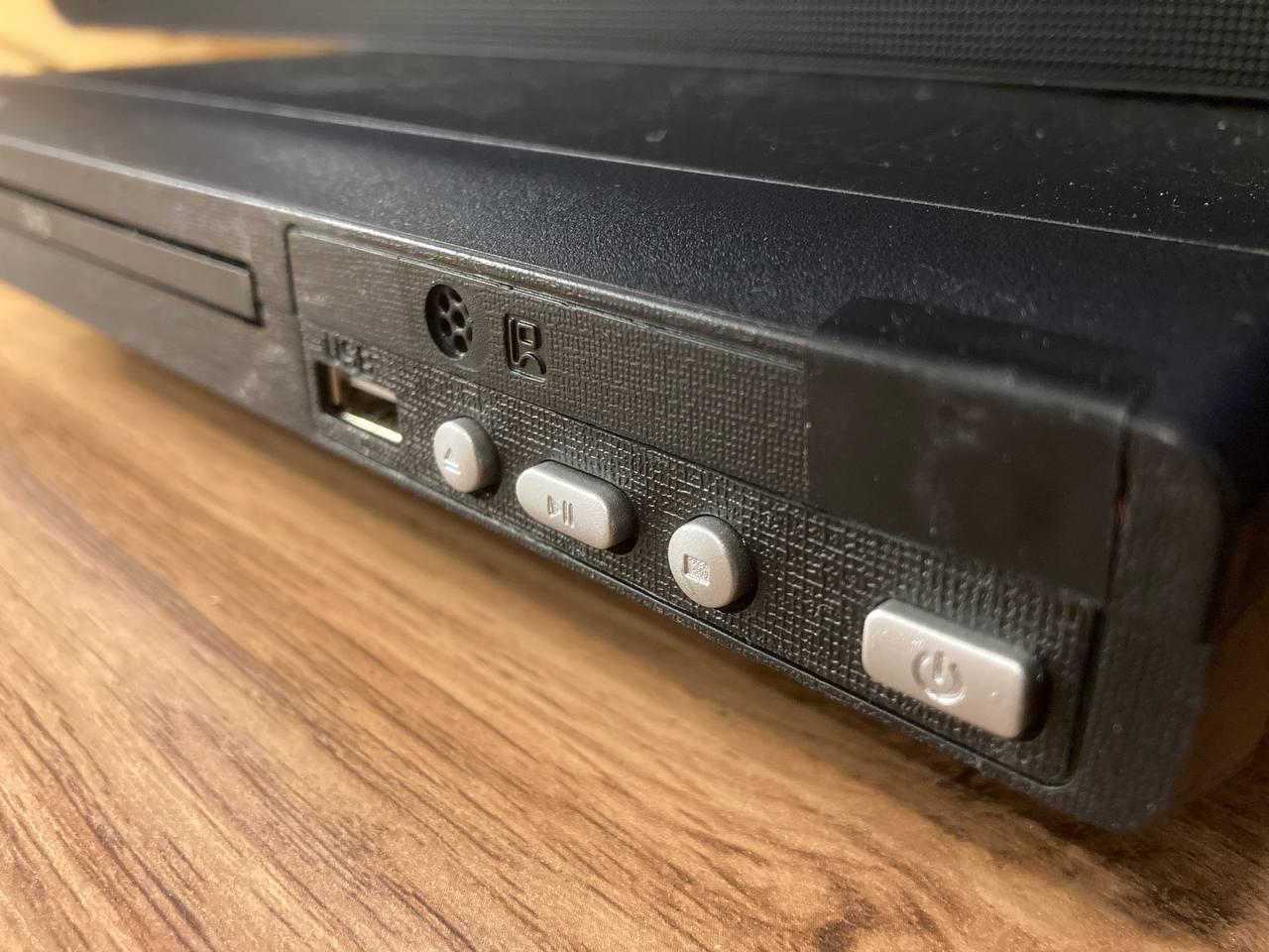 Для просмотра фильмов приобрел Видеоплеер DVD Hyundai H-DVD120. Также можно смотреть фото и слушать музыку. Видеоплеер DVD Hyundai H-DVD120 крутит разные типы дисков, можно смотреть кино на двд дисках в разных форматах. У Видеоплеера DVD Hyundai H-DVD120 на передней панели присутствует USB-порт, который позволяет подсоединить флешку или другие внешние накопители информации. На задней панели Видеоплеера DVD Hyundai H-DVD120 есть три аудио и видео выхода для подключения телевизора, звука. Для подключения используется кабель с разъемами типа тюльпан. В комплекте есть пульт ДУ, в принципе удобный для использования. Порадовал внешний вид Видеоплеера DVD Hyundai H-DVD120 необычными узорами на корпусе. Размеры плеера небольшие и удобные для размещения.