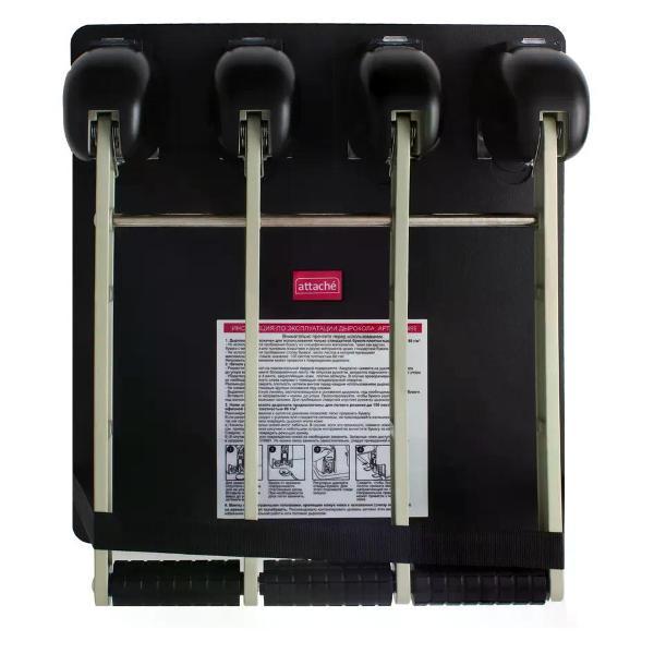 Дырокол — это незаменимый инструмент, который широко используется в офисах, школах и канцеляриях для создания отверстий в бумаге с целью удобного подшивания документов. Он способен пробить до 150 листов за один раз, что делает его идеальным решением для работы с большими объемами информации, требующими систематизации и упорядочивания. Этот надежный аксессуар отличается высоким качеством, обеспечивая аккуратное оформление отверстий и сохранение целостности бумаги. Эргономичный дизайн способствует комфортному и быстрому использованию в повседневных задачах. Студенты также находят его популярным, особенно при подготовке учебных материалов и поддержке порядка в папках с документами. Компактный корпус легко помещается в контейнер для канцтоваров, не занимая много места, и всегда остаётся под рукой. Благодаря этому инструменту работа с материалами становится проще, позволяя сосредоточиться на более важных задачах и поддерживать организованность в рабочем пространствеЦвет черный; вид мощный; материал корпуса пластик; пробивная мощность 150 листов; количество пробиваемых отверстий 4 пробивных отверстия; размер пробиваемого отверстия 6 мм; линейка да; Торговая марка: Attache; Страна: Китай.