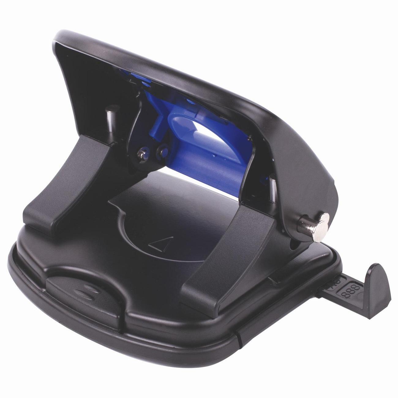 Способен пробить за один раз 25 листов бумаги. Стандартное количество пробиваемых отверстий - 2, диаметр каждого - 6 мм. Благодаря расстоянию между отверстиями в 8 см проколотые дыроколом листы могут храниться в папке идеально ровно и не мяться. Наличие ограничительной линейки позволяет пробить отверстия в нужном месте, что делает возможным сложить документы в папку ровной стопкой. Дырокол оснащен блокиратором для компактного хранения. Основная задача контейнера для конфетти состоит в сборе мусора, благодаря чему не будет постоянно загрязняться рабочее пространство. Имеет стильный дизайн, комбинированный цвет и эргономичную форму корпуса.