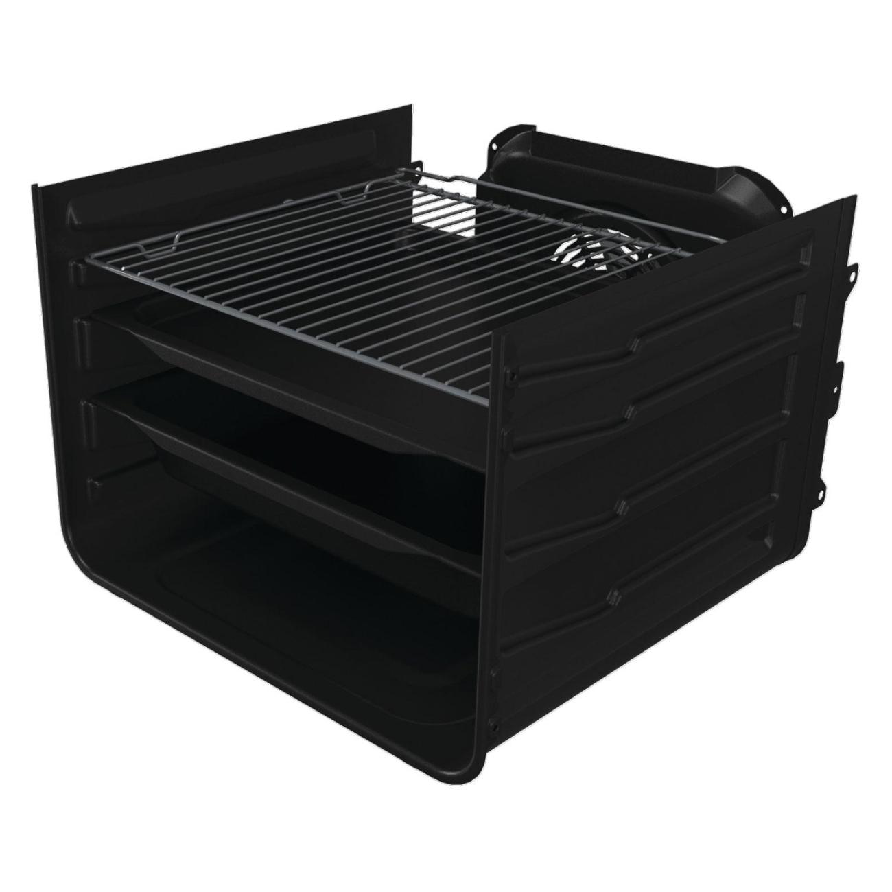 Остекление дверцы двухслойное: такая конструкция способствует более эффективному удержанию тепла и не дает плите сильно нагреваться снаружи. Вес плиты 37,5 кг. В комплекте поставляются два противня и решетка.