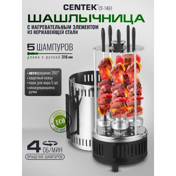 Вы можете купить Электрическая шашлычница Centek CT-1461 в магазинах М.Видео по доступной цене. Электрическая шашлычница Centek CT-1461: подробное описание, фото и отзывы реальных покупателей, характеристики, возможность скачать инструкции и подобрать аксессуары.