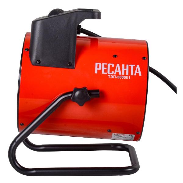 Электрическая тепловая пушка «Ресанта» ТЭП-5000К1 (67/1/19) с прямым способом нагрева работает от сети 220-240 В и потребляет до 5 кВт электроэнергии.