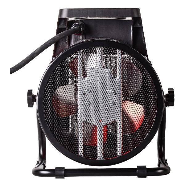 Изделие потребляет до 5 кВт электроэнергии, рассчитано на подключение к трехфазной сети напряжением 380 В и предназначено для обогрева цехов, складов, других производственных помещений площадью до 50 м². Максимальный уровень шума — 55 дБ. Предусмотрена защита от опрокидывания и перегрева.