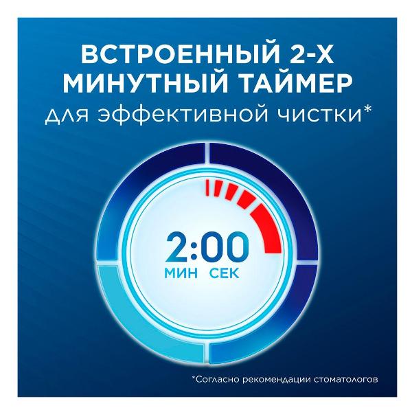 Встроенный таймер каждые 30 секунд оповещает о необходимости сменить область обработки. Головка круглой формы охватывает каждый зуб и позволяет на 100% удалить налет. Режимов работы у зубной щетки три: ежедневная, бережная и экстрабережная чистка. Модель функционирует от встроенного аккумулятора и не требует подключения к электросети.