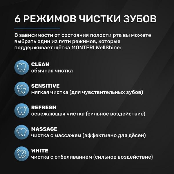 Вы можете купить Электрическая зубная щетка MONTERI WellShine B32 в магазинах М.Видео по доступной цене. Электрическая зубная щетка MONTERI WellShine B32: подробное описание, фото и отзывы реальных покупателей, характеристики, возможность скачать инструкции и подобрать аксессуары.