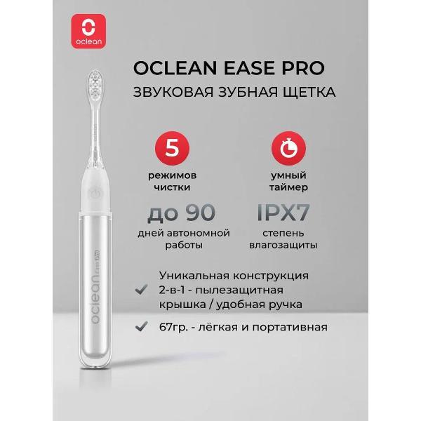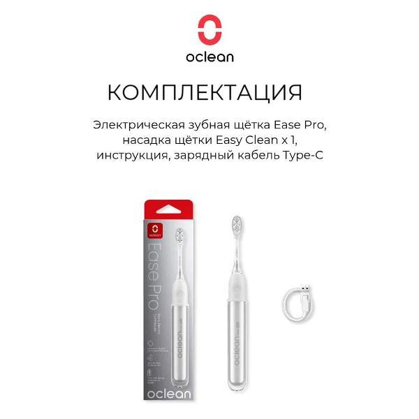 Вы можете купить Электрическая зубная щетка Oclean Ease Pro Серебряная в магазинах М.Видео по доступной цене. Электрическая зубная щетка Oclean Ease Pro Серебряная: подробное описание, фото и отзывы реальных покупателей, характеристики, возможность скачать инструкции и подобрать аксессуары.