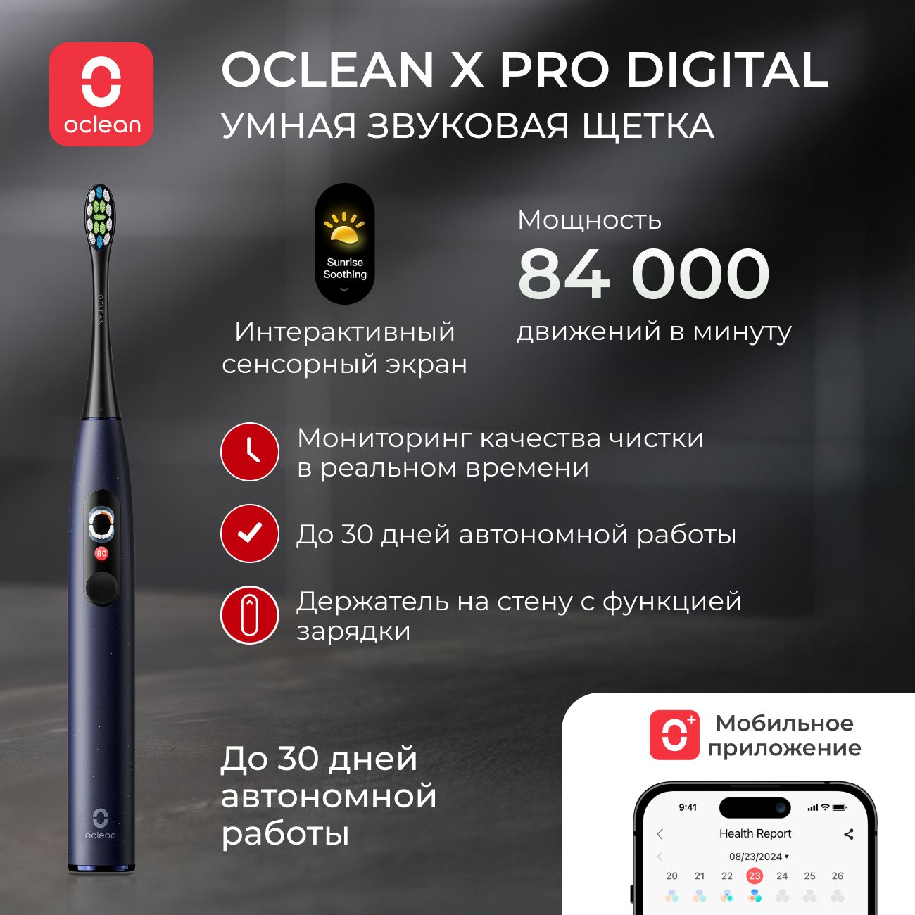 Вы можете купить Электрическая зубная щетка Oclean X Pro Digital Dark Blue в магазинах М.Видео по доступной цене. Электрическая зубная щетка Oclean X Pro Digital Dark Blue: подробное описание, фото и отзывы реальных покупателей, характеристики, возможность скачать инструкции и подобрать аксессуары.