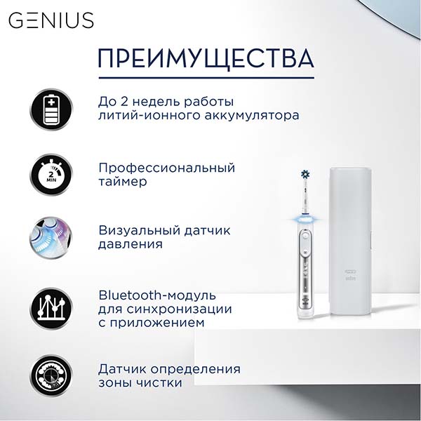 Вы можете купить Электрическая зубная щетка Oral-B Genius 8900 D701.535.5HXC в магазинах М.Видео по доступной цене. Электрическая зубная щетка Oral-B Genius 8900 D701.535.5HXC: подробное описание, фото и отзывы реальных покупателей, характеристики, возможность скачать инструкции и подобрать аксессуары.