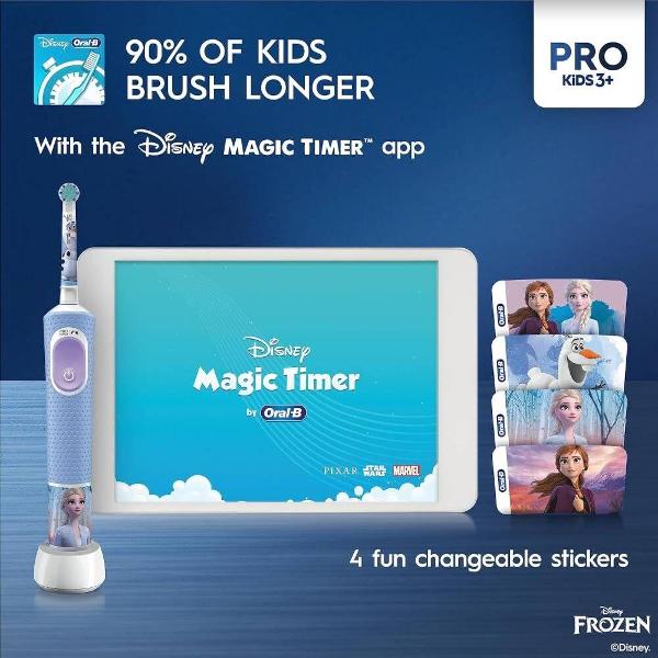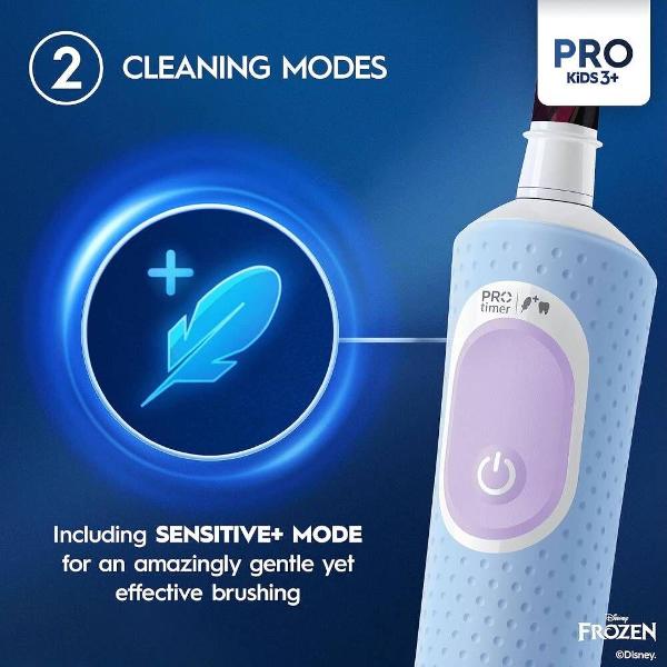 Oral-B Vitality Kids Frozen D103.413.2K — звуковая зубная щетка, разработанная специально для детей. Дизайн модели вдохновлен популярным мультфильмом «Храброе сердце».