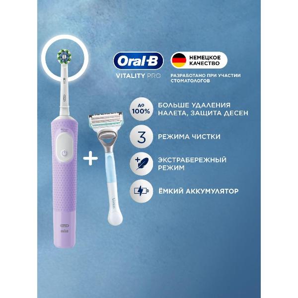 Вы можете купить Электрическая зубная щетка Oral-B Vitality Pro Lilac + Женская бритва Gillette Venus Satin Care в магазинах М.Видео по доступной цене. Электрическая зубная щетка Oral-B Vitality Pro Lilac + Женская бритва Gillette Venus Satin Care: подробное описание, фото и отзывы реальных покупателей, характеристики, возможность скачать инструкции и подобрать аксессуары.