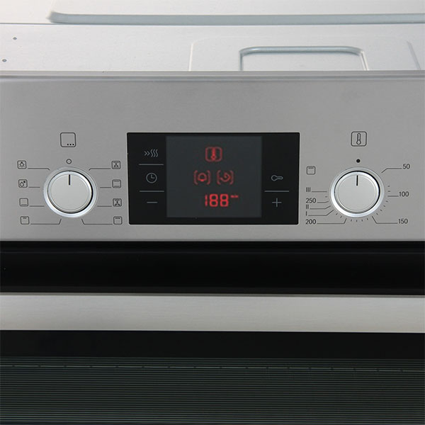 Наличие удобного цифрового дисплея облегчает работу по настройке духового шкафа и приготовлению. Модель оснащена индикаторами текущей температуры и времени приготовления.
