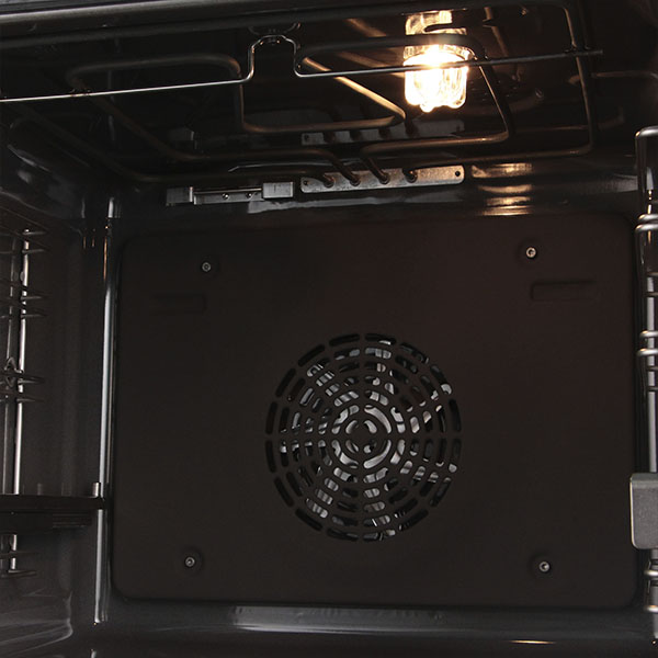 Конвектор духовки поддерживает непрерывную циркуляцию горячего воздуха. Он позволяет готовить на трёх уровнях одновременно, глубоко прогревая продукты. С ним блюда быстро покрываются хрустящей корочкой, но сохраняют сочную серединку.