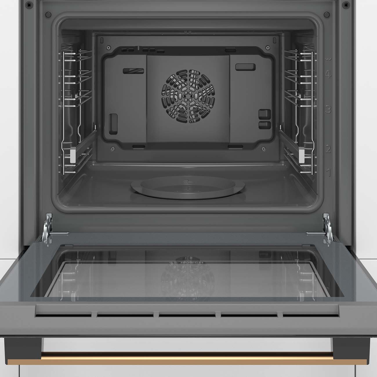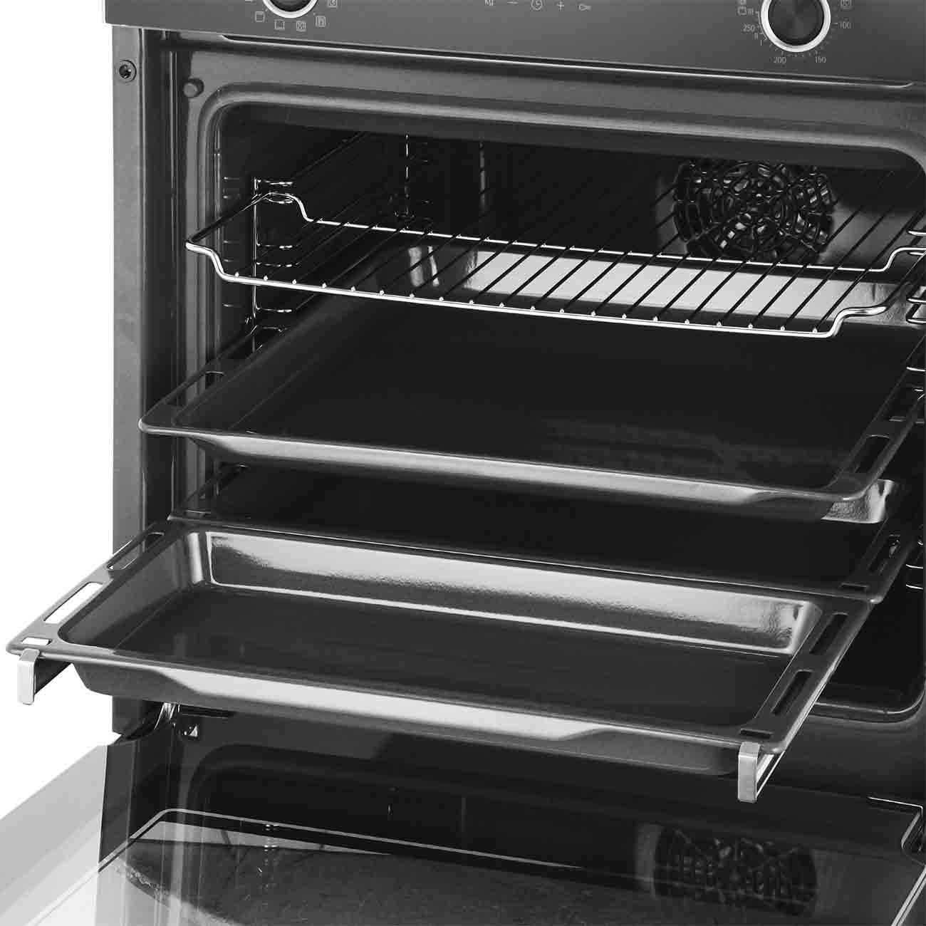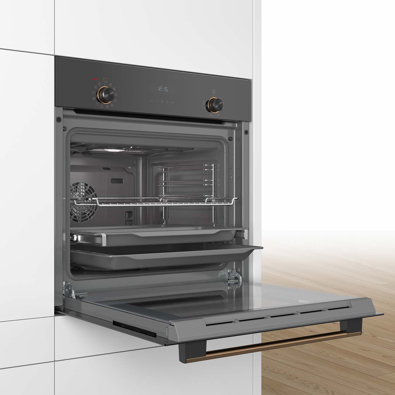 Приобрели с мужем эту духовку совсем недавно, примерно месяц назад. Выбирали вместе с родственниками, и все сошлись на мнении, что нам нужна именно эта модель. Духовой шкаф мы установили под столешницей, что позволило нам значительно сэкономить пространство. Во -первых в технике нас привлек стильный, оригинальный дизайн, который хорошо вписался в интерьере нашей кухни. Во-вторых нам понравилась вместительная камера, которая дает возможность запекать большие куски мяса, рыбы, птицы. Встроенный вентилятор равномерно распределяет горячий воздух, что гарантирует равномерное приготовление пищи. Автоматических программ приготовления много, мы пока даже не успели все испробовать. Поверхность камеры легко очищается от загрязнений и жира при помощи мягкой тряпки и моющего средства. Большой плюс – утапливаемые переключатели, что очень удобно.