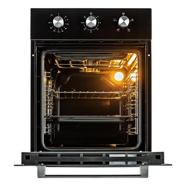 Четыре режима нагрева открывают широкий простор для творчества: от деликатного томления до образования аппетитной корочки. Наличие двойного гриля позволяет добиваться идеальной текстуры на запеканках или сочной прожарки стейков. За безопасность и комфорт отвечает тройное остекление дверцы: внешнее стекло нагревается намного слабее, что защищает от случайных ожогов, а надежная конструкция сохраняет микроклимат внутри камеры. Внутренняя подсветка на основе галогенной лампы обеспечивает яркий и четкий обзор — вы всегда сможете контролировать степень готовности блюда, не приоткрывая дверцу. Встроенный вентилятор эффективно охлаждает корпус, продлевая срок службы техники и защищая окружающую мебель от перегрева. Благодаря гладкой эмали легкой очистки уход за духовым шкафом сводится к минимуму: жир и загрязнения удаляются без абразивов, простой влажной салфеткой.