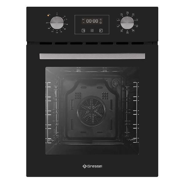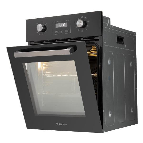 Электрический духовой шкаф Gressel U4ES59001 оборудован трехслойной дверцей с пониженным нагревом внешнего стекла и галогеновой подсветкой рабочей камеры. Объем 50 л подходит для приготовления нескольких блюд одновременно.