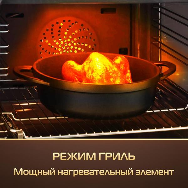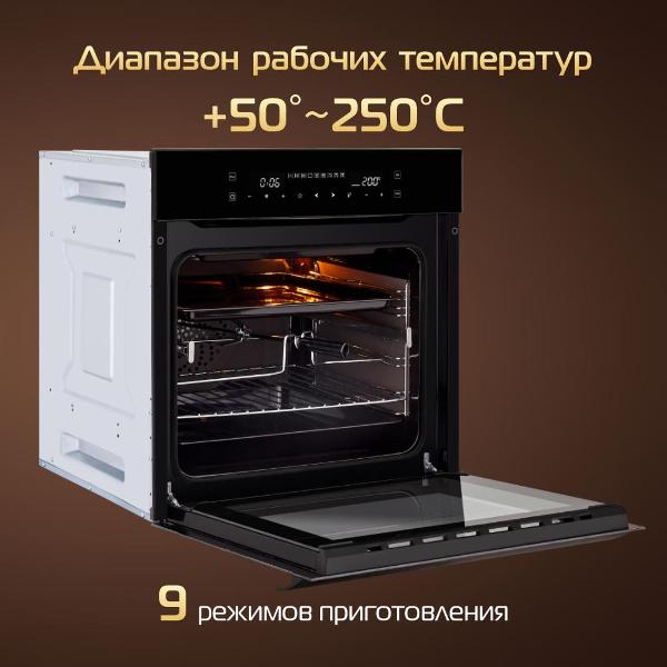 Электрический духовой шкаф Hiberg VM 6192 B предназначен для размораживания, выпечки и других функций. С помощью панели управления можно настроить температуру, время приготовления в соответствии с индивидуальными потребностями. Устройство оснащено цифровым дисплеем, на котором отображается информация о текущем режиме. За счет специального вентилятора обеспечивается равномерное распределение тепла. Для комфортной эксплуатации предусмотрена лампа накаливания, обеспечивающая качественное освещение внутри камеры, поэтому контролировать степень готовности блюда можно при закрытой дверце.