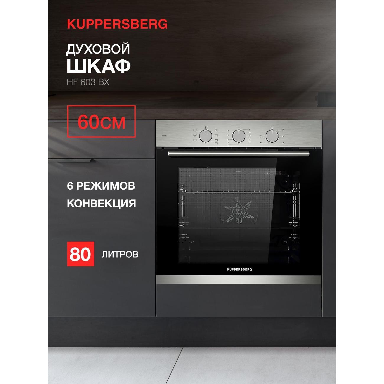 Вы можете купить Электрический духовой шкаф Kuppersberg HF 603 BX в магазинах М.Видео по доступной цене. Электрический духовой шкаф Kuppersberg HF 603 BX: подробное описание, фото и отзывы реальных покупателей, характеристики, возможность скачать инструкции и подобрать аксессуары.