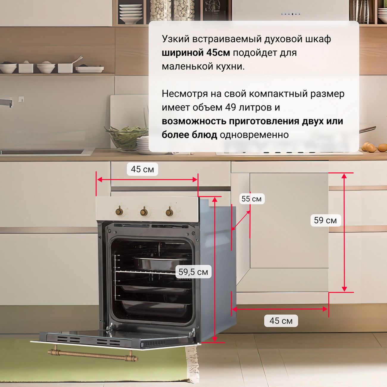 Есть механический таймер, звуковой сигнал. Внутренняя подсветка позволяет контролировать процесс приготовления. У прибора хромированные телескопические направляющие.