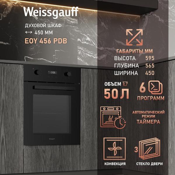 Вы можете купить Электрический духовой шкаф Weissgauff EOY 456 PDB в магазинах М.Видео по доступной цене. Электрический духовой шкаф Weissgauff EOY 456 PDB: подробное описание, фото и отзывы реальных покупателей, характеристики, возможность скачать инструкции и подобрать аксессуары.