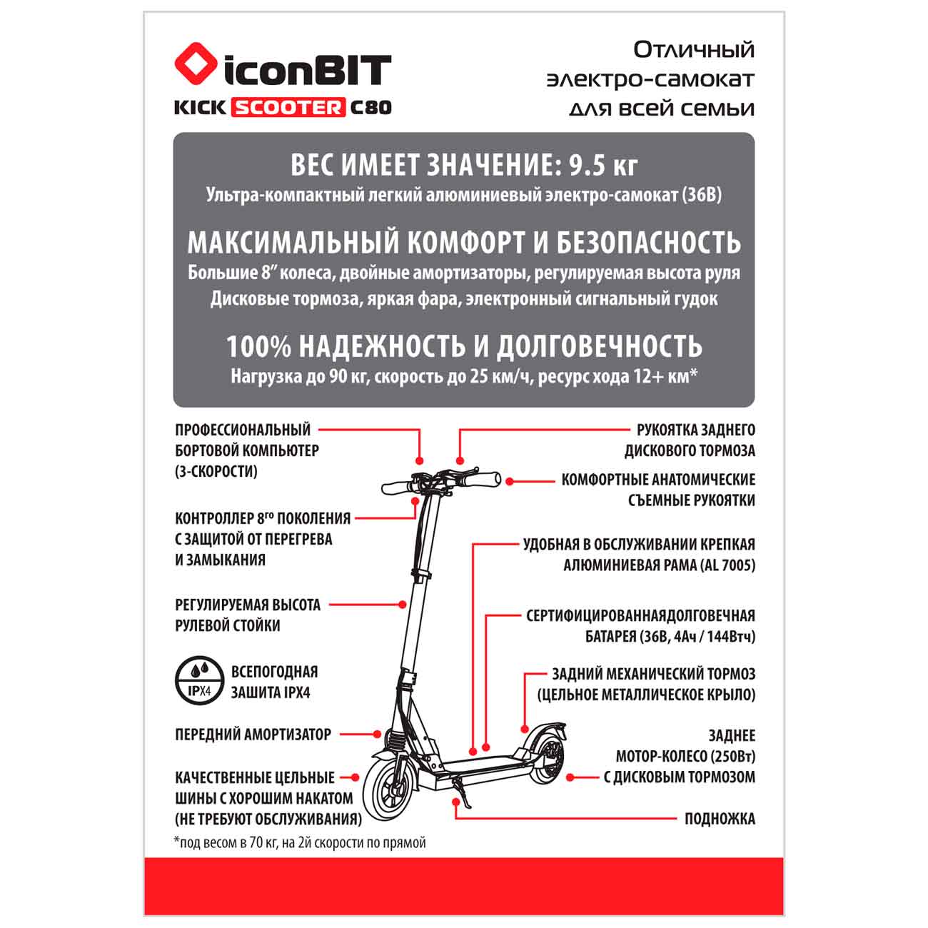 Вы можете купить Электрический самокат iconBIT Kick Scooter C80 White (IK-2003W) в магазинах М.Видео по доступной цене. Электрический самокат iconBIT Kick Scooter C80 White (IK-2003W): подробное описание, фото и отзывы реальных покупателей, характеристики, возможность скачать инструкции и подобрать аксессуары.