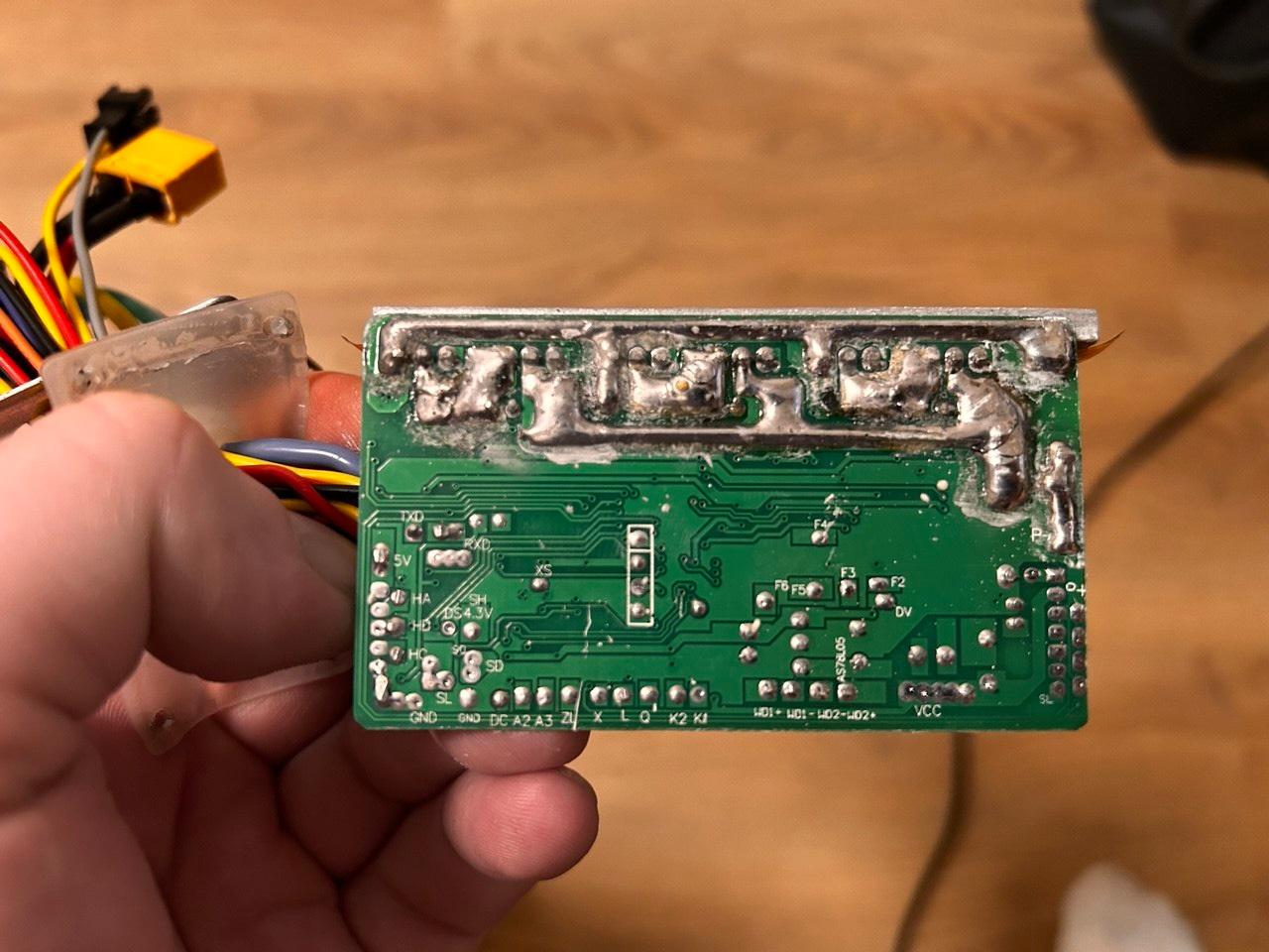 3. Контроллер - уже сделали ему шунтирование (на перемычку накинули олова каплю) + дорожки явно кто-то залудил побольше... После китай завода продавец явно поработал паяльником. И это хорошо, наверное..