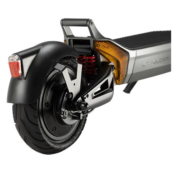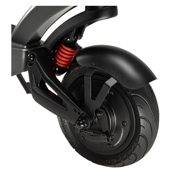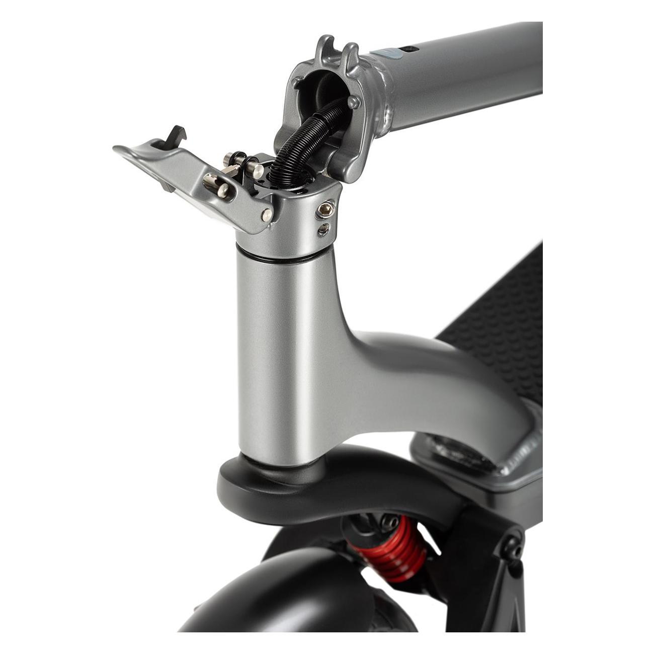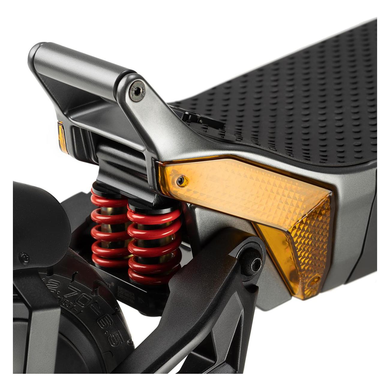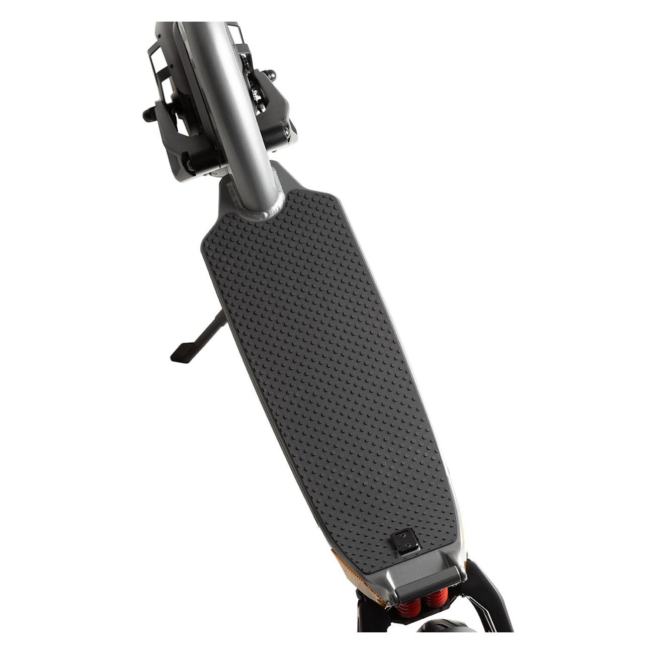 Дека длиной 55,2 см и шириной 18,6 см дает возможность принять устойчивое положение. Передняя фара и задний фонарь гарантируют безопасную езду. За счет складного механизма транспортное средство не занимает много места во время хранения. Модель защищена от пыли и влаги по стандарту IP66.