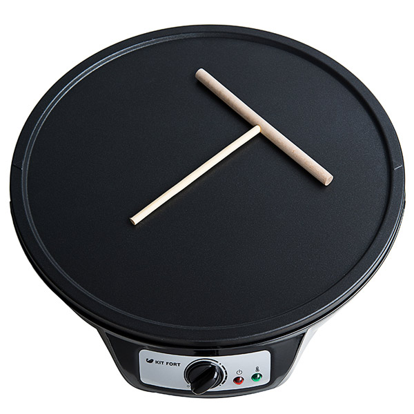 Но плюсы тоже есть: удобно печь сразу по 4 мелких блинчика, и даже первый блин комом вряд ли на ней получится, т.к. покрытие антипригарное, с легкостью можно лопаточкой из комплекта подцепить и перевернуть блинчик.