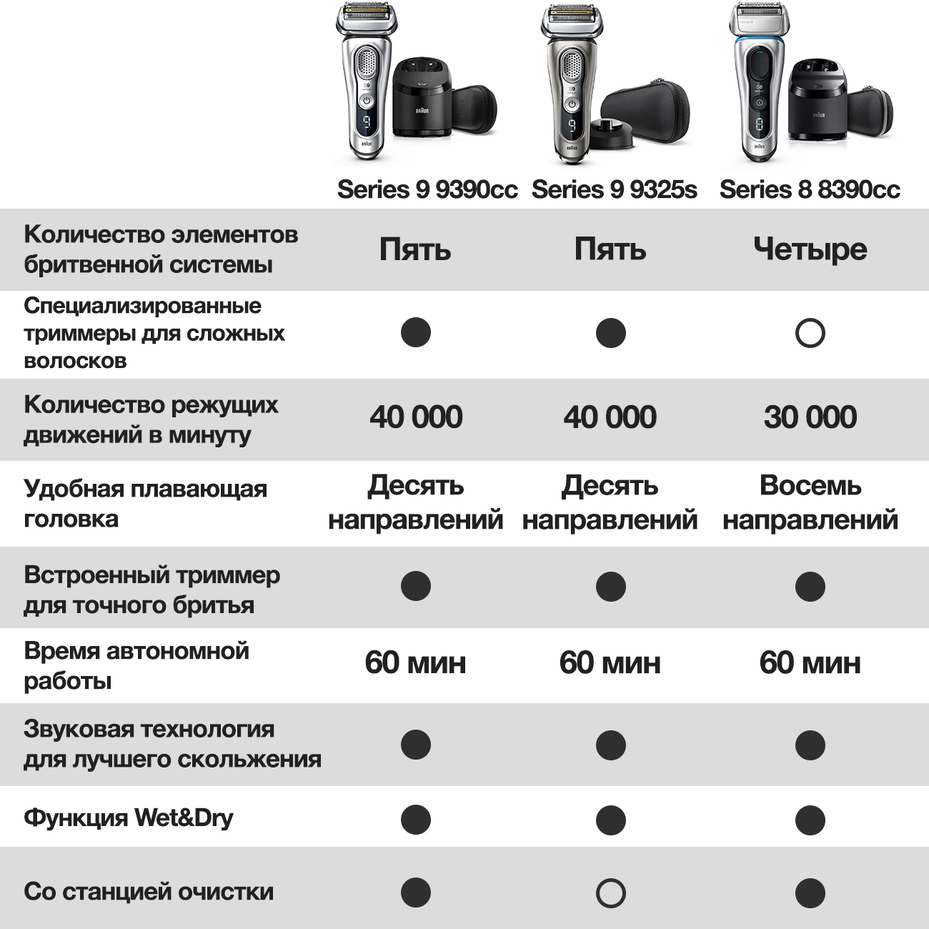Пишу от имени мужа. Вот решили мужу купить бритву браун 9390 см. Дома бритву почистили, зарядили и муж первый раз попробовал побриться. Радости не было предела, говорит, что не ожидал и близко. Побрился на сухую, быстро, чисто и без разрежений. Очень доволен, что теперь можно бриться в любое время. Ранее, с его слов, лезвием не всегда удобно бриться, лень было, надо щетину размачивать водой было. Теперь этому конец.