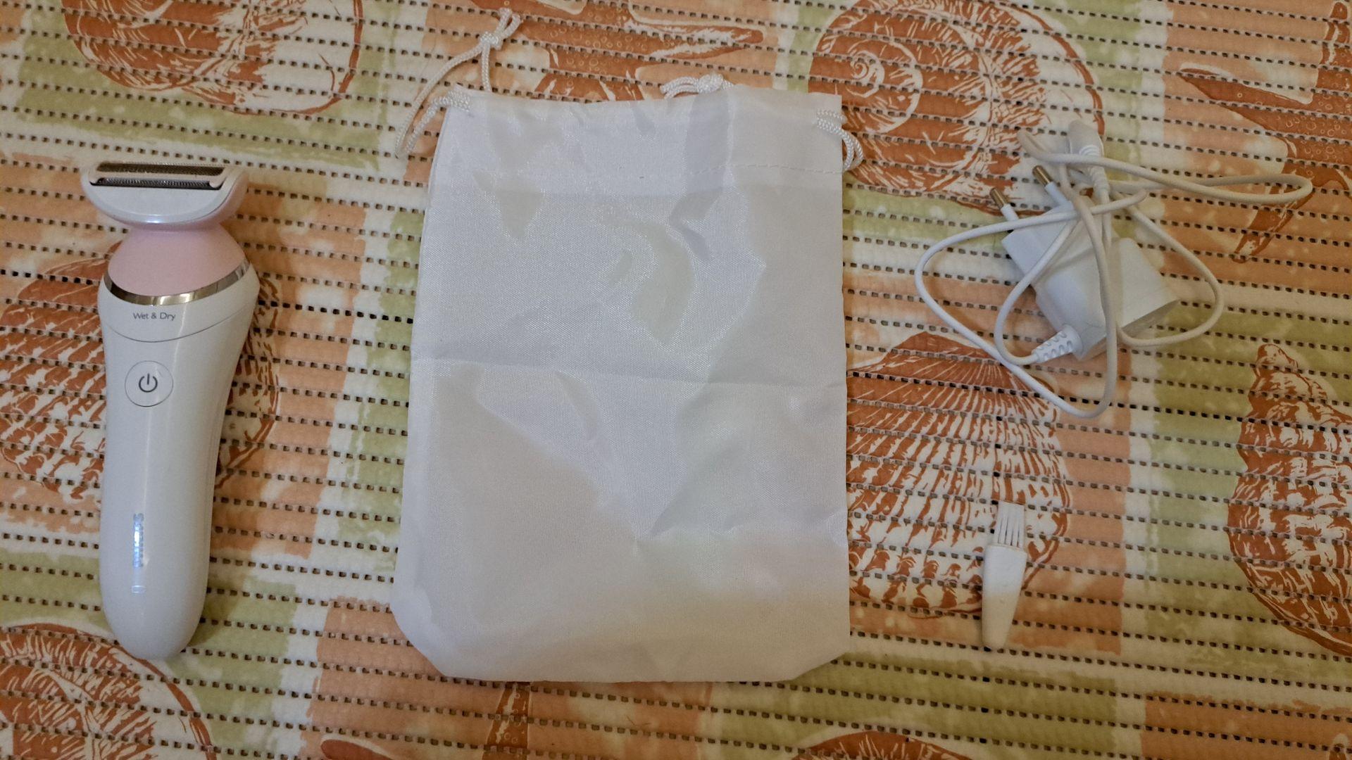 Работа от батареи, удобно держать в руке, двусторонняя головка, отлично срезает, имеет 3 насадки в комплекте, долго держит зарядку, есть специальный мешочек для хранения и перевозки, аккумулятор заряжается быстро и зарядка держит долго